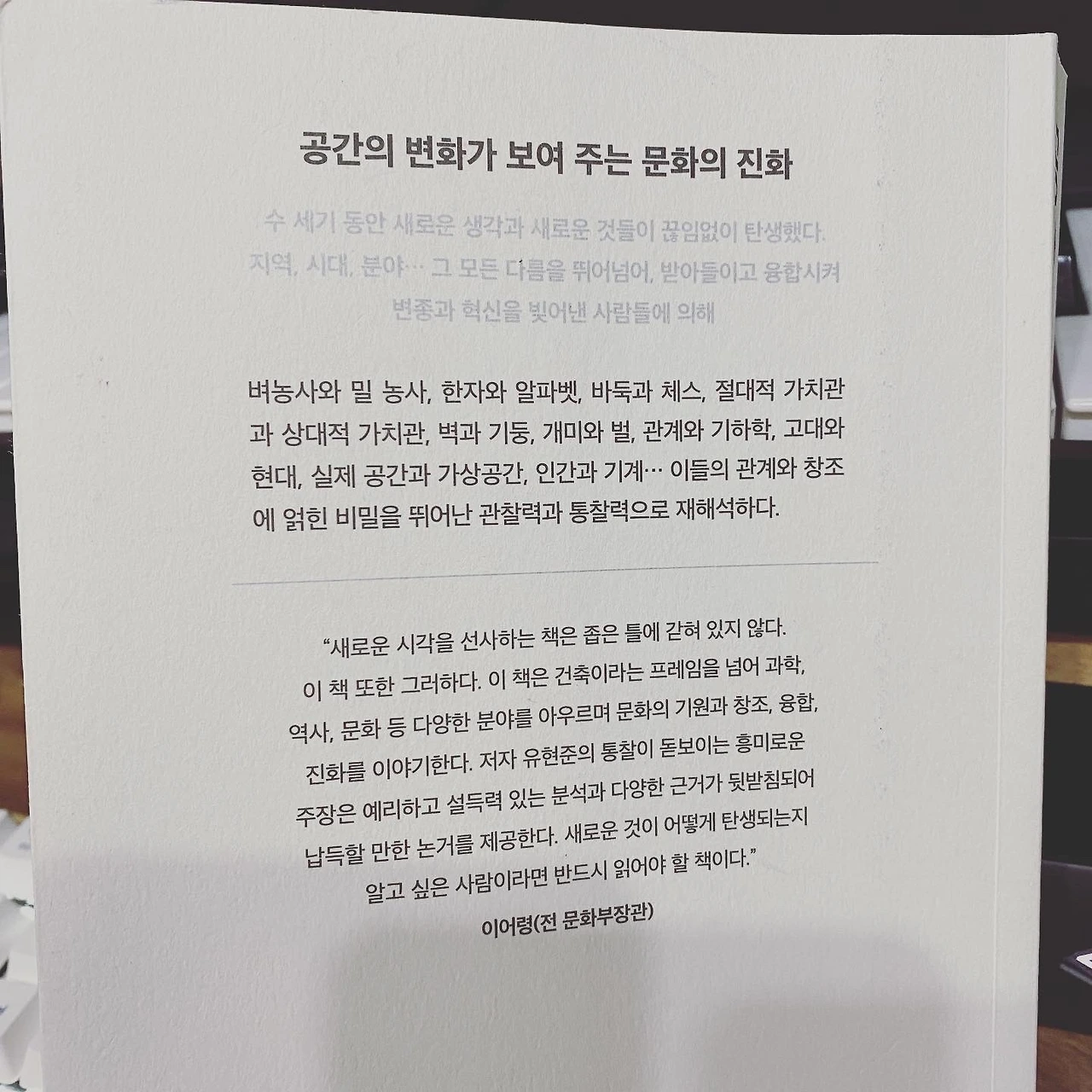 건축은 인간이 가장 오랫동안 해온 일이다. 그 행위 속에 문화와 역사가 고스란히 묻어있다. 건축과 함께 인류가 어떤 문화를 쌓고 융합해왔는지를 이해할 수 있다면, 세상만사가 갈등과 융합으로 어떻게 새롭게 만들어질지 예측할 수 있을 것이다.