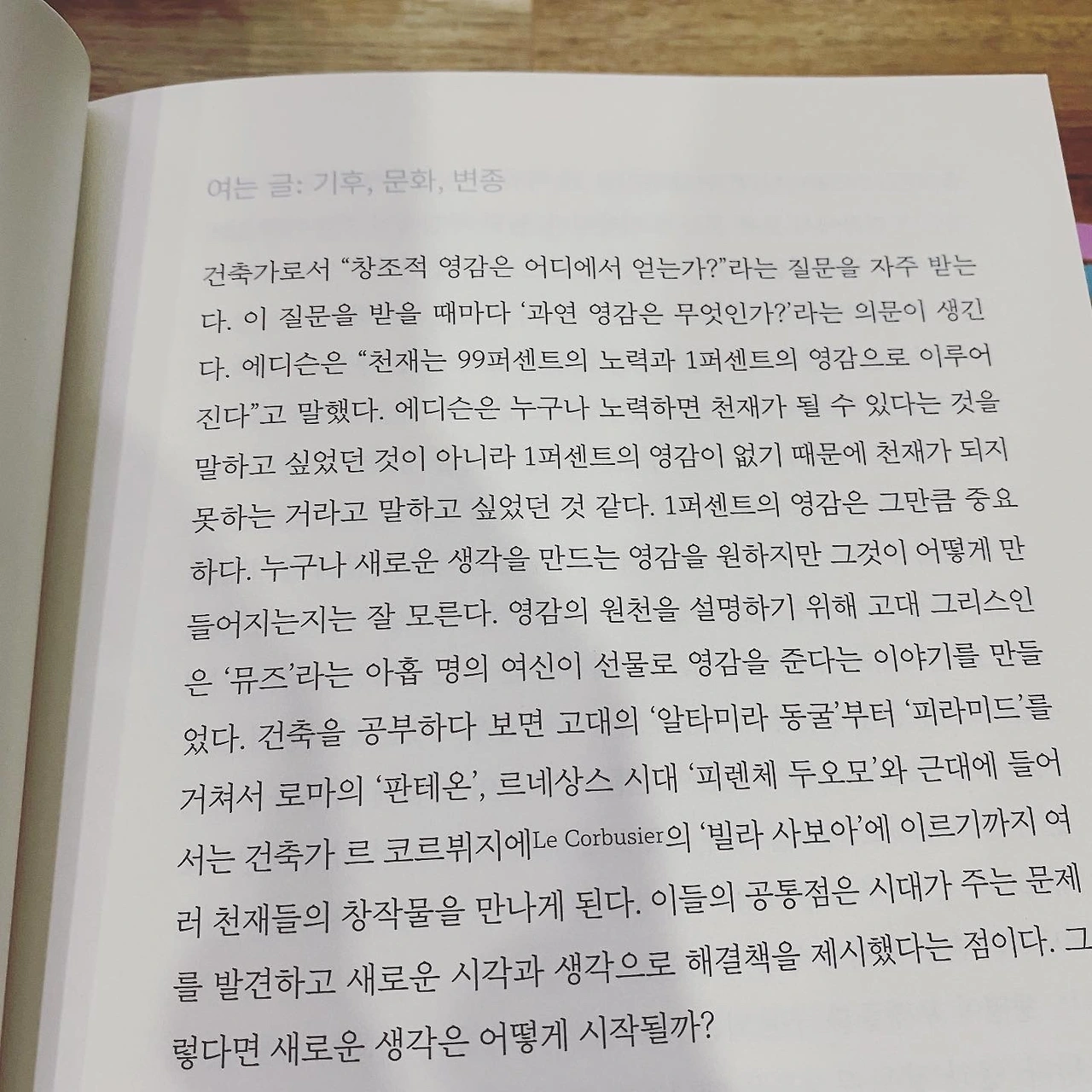 이 책에는 코로나 이야기가 나온다. 마치 예전부터 예견된 듯한 느낌으로 공간의 이야기를 현재 코로나 사태로 이어낸다. 그리고 미래 사회의 모습으로 자연스럽게 이어나간다. 그래서 난 이 책이 조금은 더 완벽한 건축과 공간에 대한 인문학책으로 완성되지 못하고 급히 튀어나온 게 아닐까 생각이 든다. 내 예상이 맞는다면 작가님은 1년 내에 이 급했던 책에 담지 못한 더 깊은 공간에 대한 이야기를 책으로 내실 것 같다.
