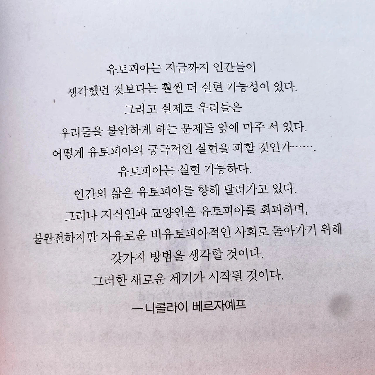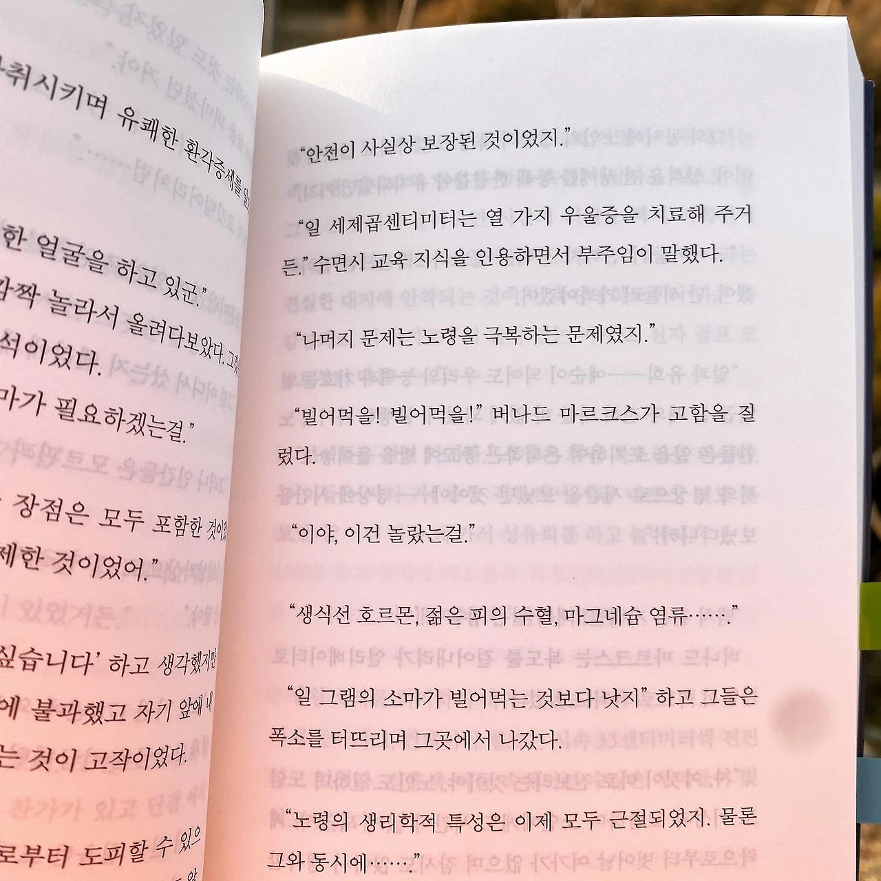 유일하게 어색해지는 부분은 존이 문학작품을 통해 상상한 인류를 미래 세계와 대조시키는 부분이었다. 각 작품이 익숙하지도 않거니와 태어나면서부터 보호구역의 야만인들 속에서 살아왔는데 문학작품을 통해 알게 된 진짜 인류를 맹신하는 모습이 살짝 어리둥절했다. 아마 나 자신이 그 문학작품의 인류와 미래 인류의 가운데 지점의 생각을 하고 있기 때문이 아닐까 생각한다. 난 두 세상 모두 받아들이기 어려운 세상에 존재하고 있다.