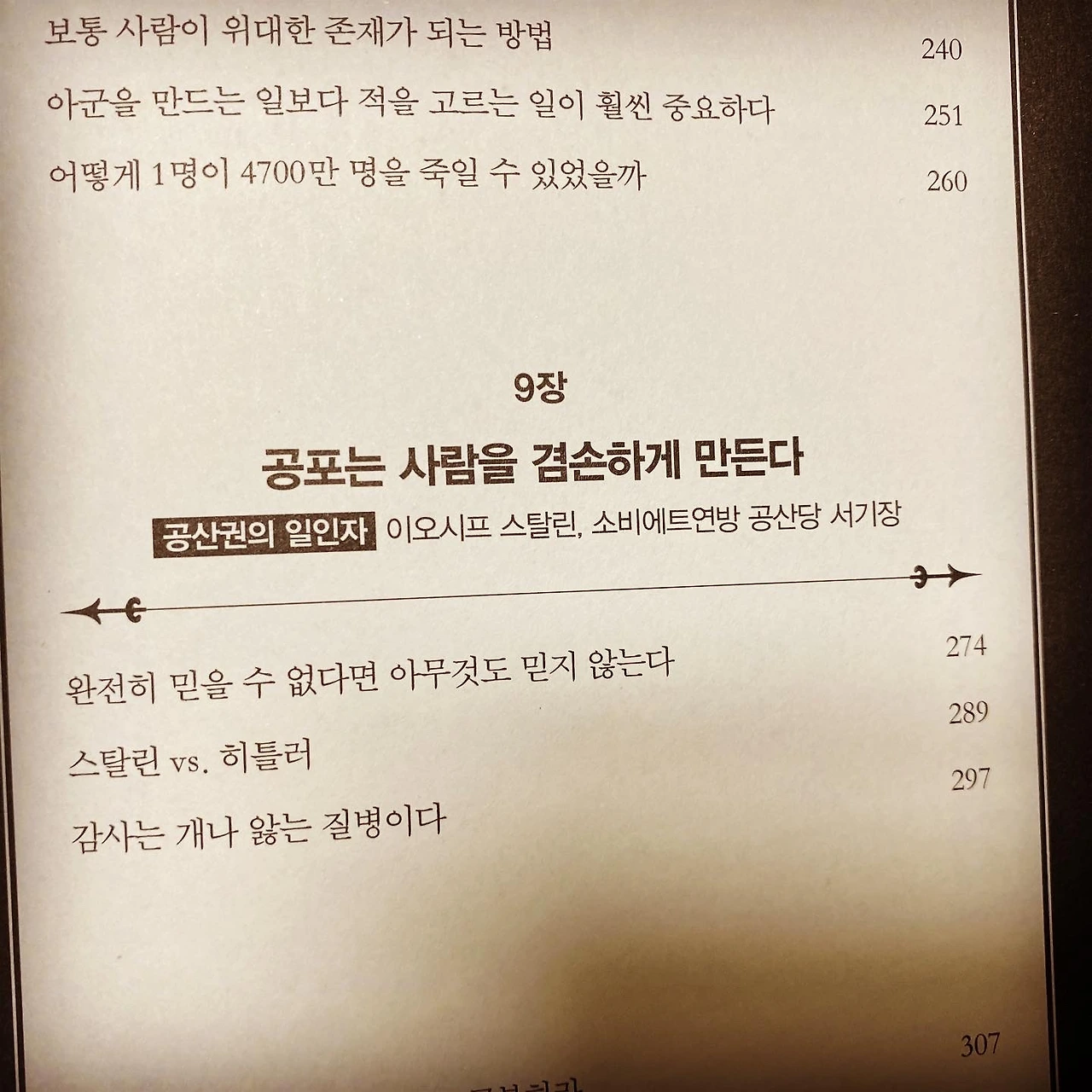 그리고 또 하나 뜻밖의 수확은 독재자들에 대한 부분이었다. 역사 속 지독한 독재자들이 어떻게 대중을 휘어잡았을까, 어떻게 독재 시스템을 구축했을까, 역사의 패자로 가려진 매력이 무엇일까 항상 궁금했었다. 넷플릭스에 관련 다큐멘터리가 있긴 하지만 흥미성이 부족해 다 보지 못했었다. 그런데 이 책 덕분에 가장 지독한 독재자 두 명의 사례를 살펴볼 수 있었다. 바로 히틀러와 스탈린이다.
