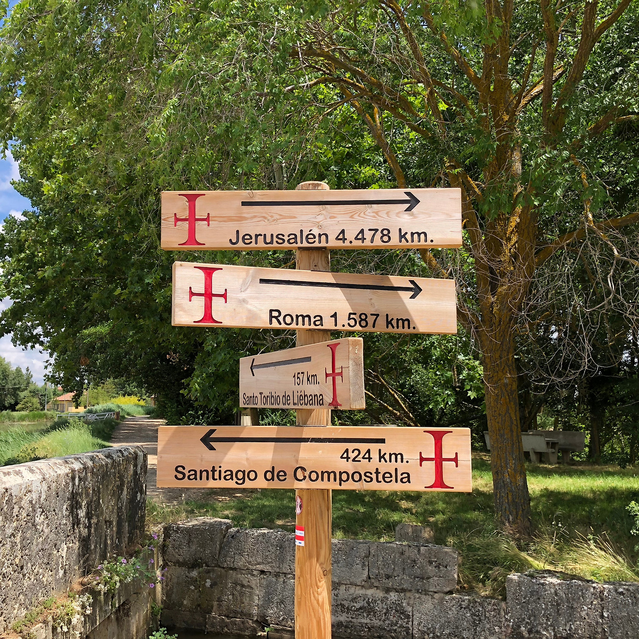 심해지는 발의 통증과 쌓여만 가는 피로에 우리 셋의 발엔 테이핑 테이프가 칭칭 감겨있었다. 그래서 버스를 탈 생각에 지영이와 민지가 운행 시간을 물으러 갔는데, 친절한 사장님께서 버스 정류장이 있는 다음 마을 Carrión까지 직접 차를 태워주신다고 했단다. 함께 타고 가자는 솔깃한 제안에 차를 탈까 걸어갈까 이랬다가 저랬다가 왔다 갔다 마음이 흔들렸다. 왜냐하면.. 나도 아프고 피곤했지만.. 나는 레온까지 계속되는 메세타 구간을 걷고 싶지 않았다. 그래서 내일모레, 까리온에서 레온으로 버스를 탈 계획이었다. 그런데 지금 또 차를 타면.. 너무 많은 거리를 뛰어넘게 되잖아..
