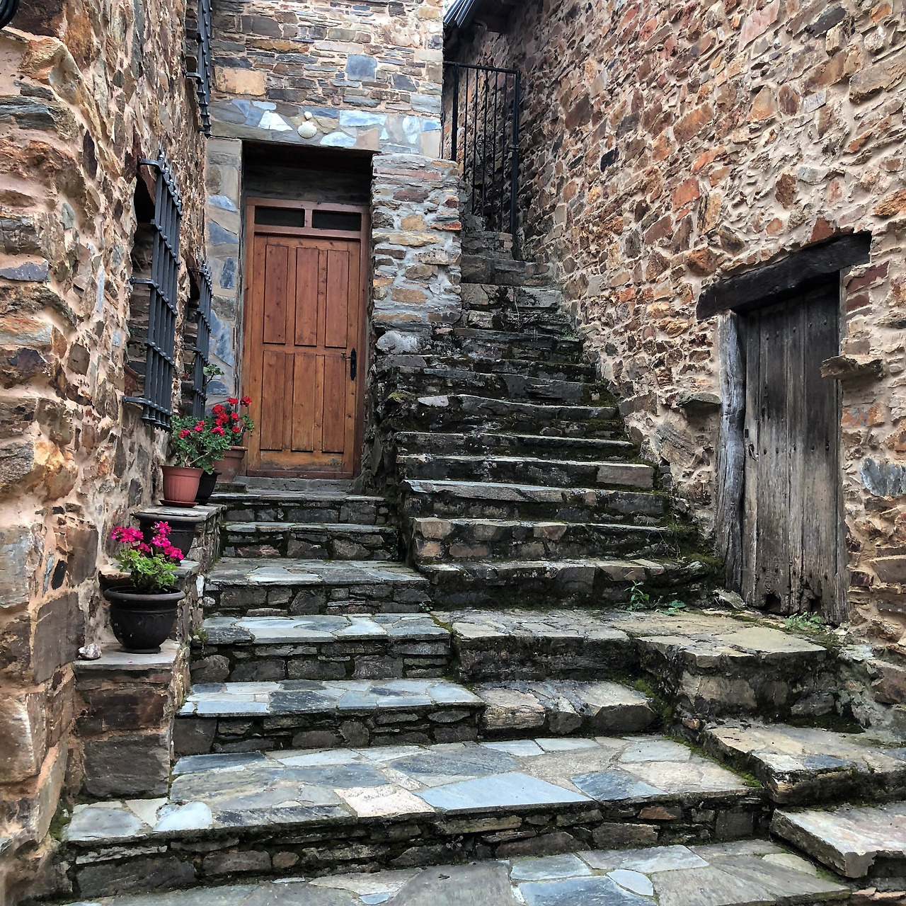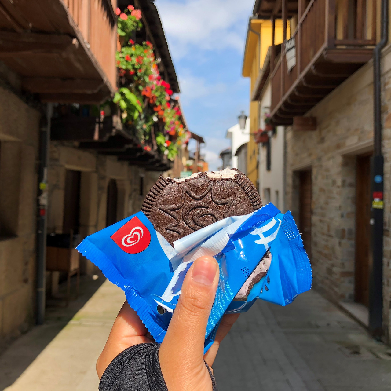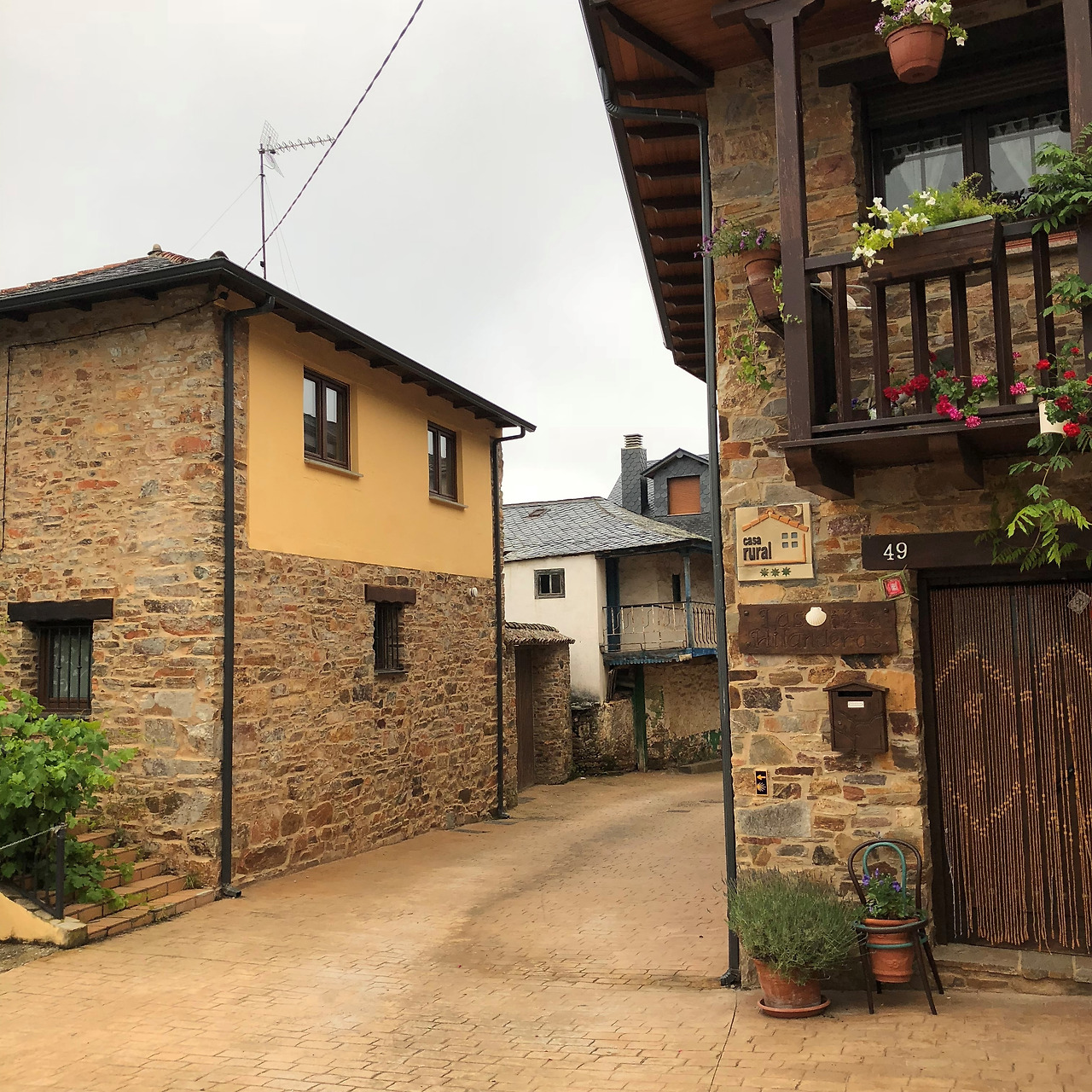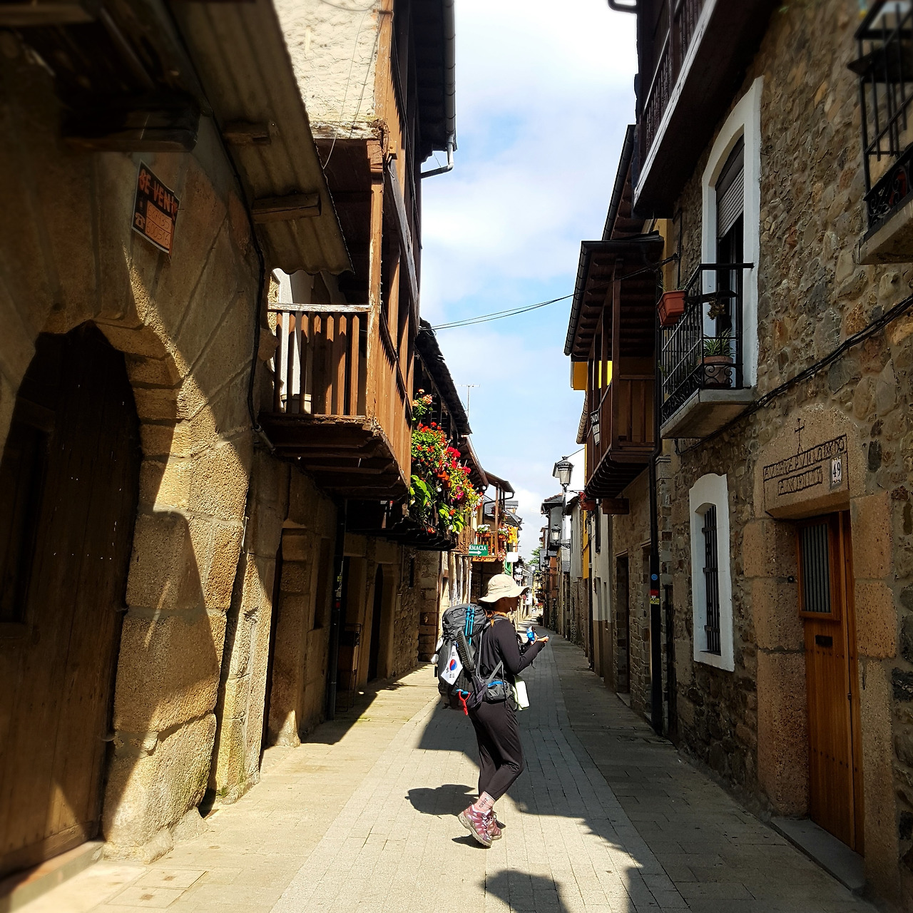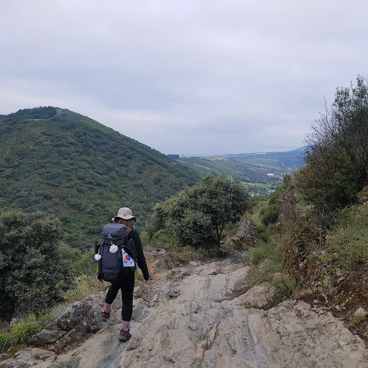 한참을 신나게 뛰어 내려가다가 탁 트인 전경에 걸음을 멈췄다. 와, 예쁘다~ 카메라를 켜 사진을 찍고 있을 때 마을의 지붕들이 남색인 걸 보고 번뜩 생각이 났다. 요한 오빠가 했던 말이! 순례길 중간부터 마을 지붕의 색깔이 주황색에서 남색으로 바뀔 거라고 했었는데, 진짜네!