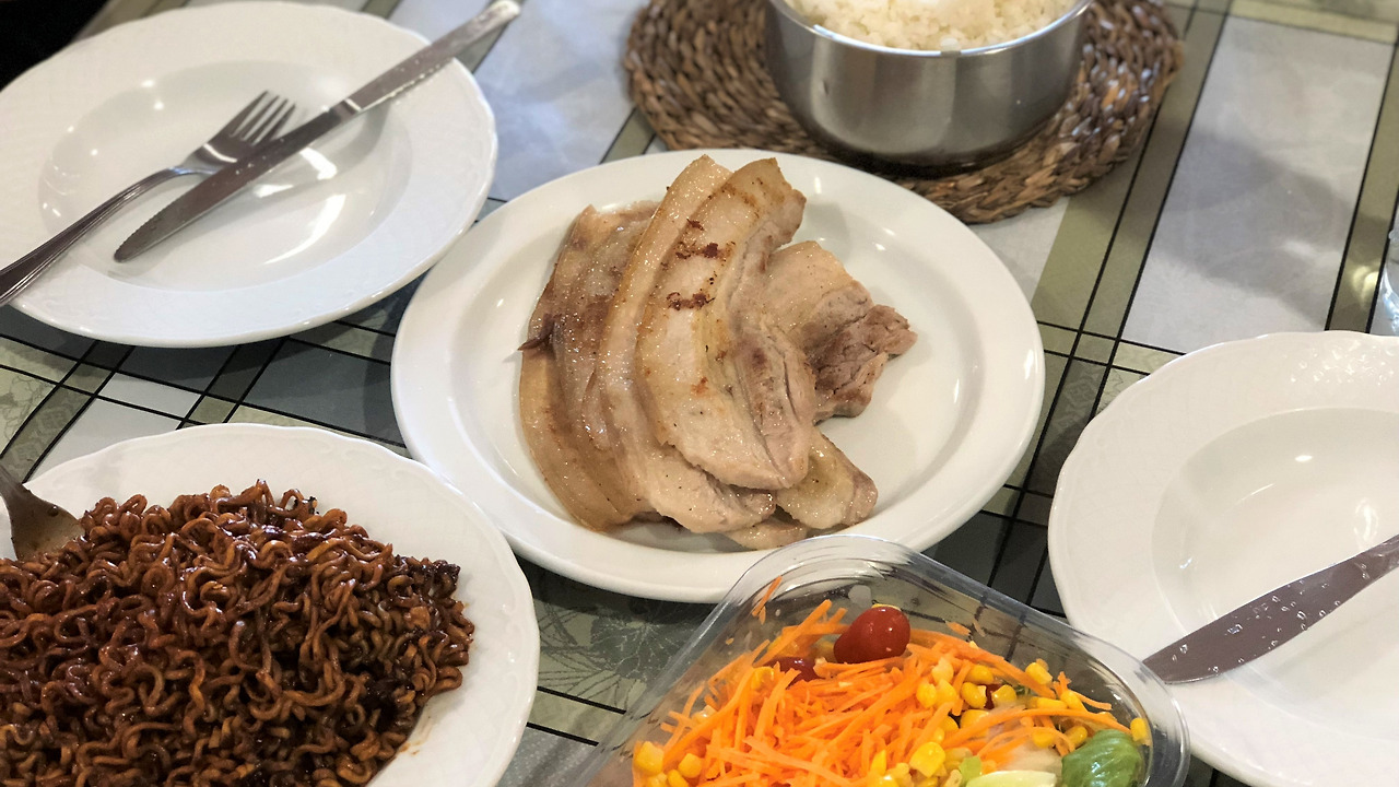 도보로 왕복 1시간 거리에 있는 데카트론에서 우비도 사고, 8일 만에 만나는 민지와 장을 보고 돌아오는 길.