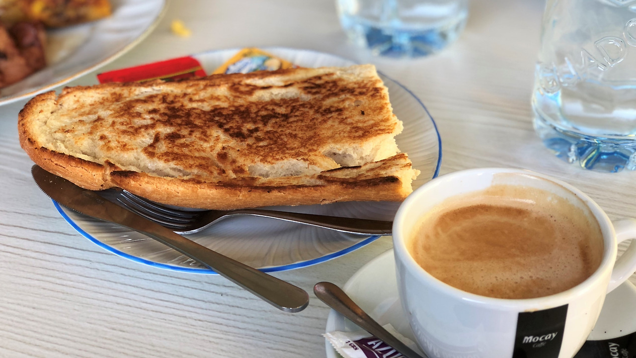 오늘 처음으로 토스타다를 먹어봤다. 카페 입간판에 아침메뉴로 쓰여있길래 주문해봤는데 웬걸 진짜 맛있어! 순례길 25일 만에 토스타다 맛을 알았다. 그냥 구운 빵인데 이렇게 맛있다니.. 빵 자체가 맛이 좋은 거겠지?