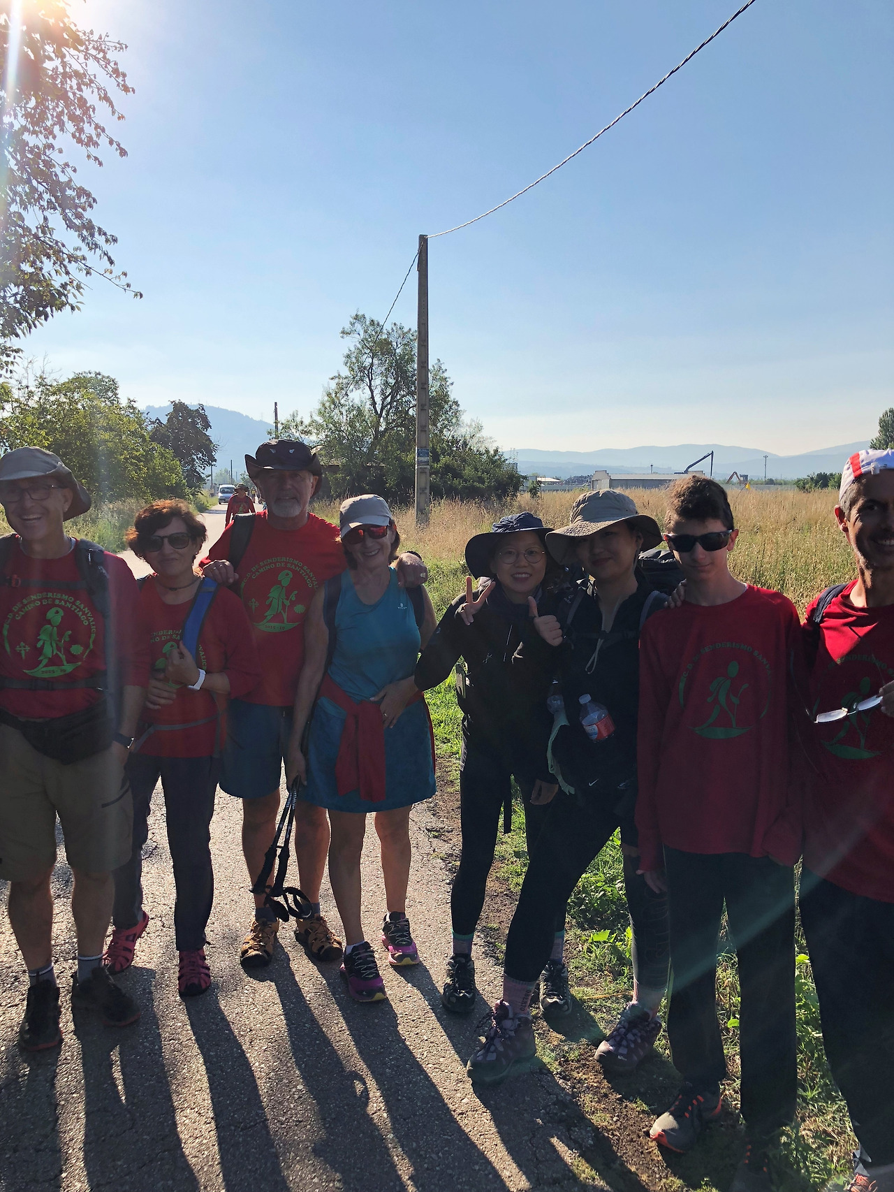 그 한 시간 반 동안 지영이와 떨어졌고, 마을 하나를 지나 구불구불한 도로의 갓길을 걷고 있을 땐 하늘에 닿을 것 같은 언덕을 오르고 있는 순례자들을 봤다. 조금 전 도로와 산길로 갈라지는 갈림길에서 산길로 올라간 순례자들인가 보다. 산길로 갔으면 저 언덕을 올라야 했구나..