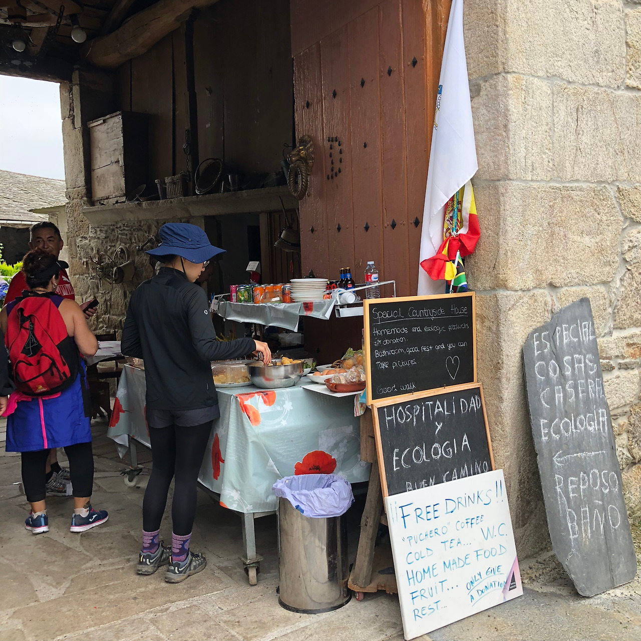 아이는 꽤나 열심히도, 그 와중에 말을 하지 못함을 어필하며 내게 설명을 했다. 기부를 하란다. 내 이름과 출신나라, 순례길을 시작한 도시명과 함께 기부금액을 적으란다. 하, 이거 이상한데.. 뒤를 돌아 지영이를 찾았지만 지영이는 다른 아이들에게 가려 보이지 않았다.