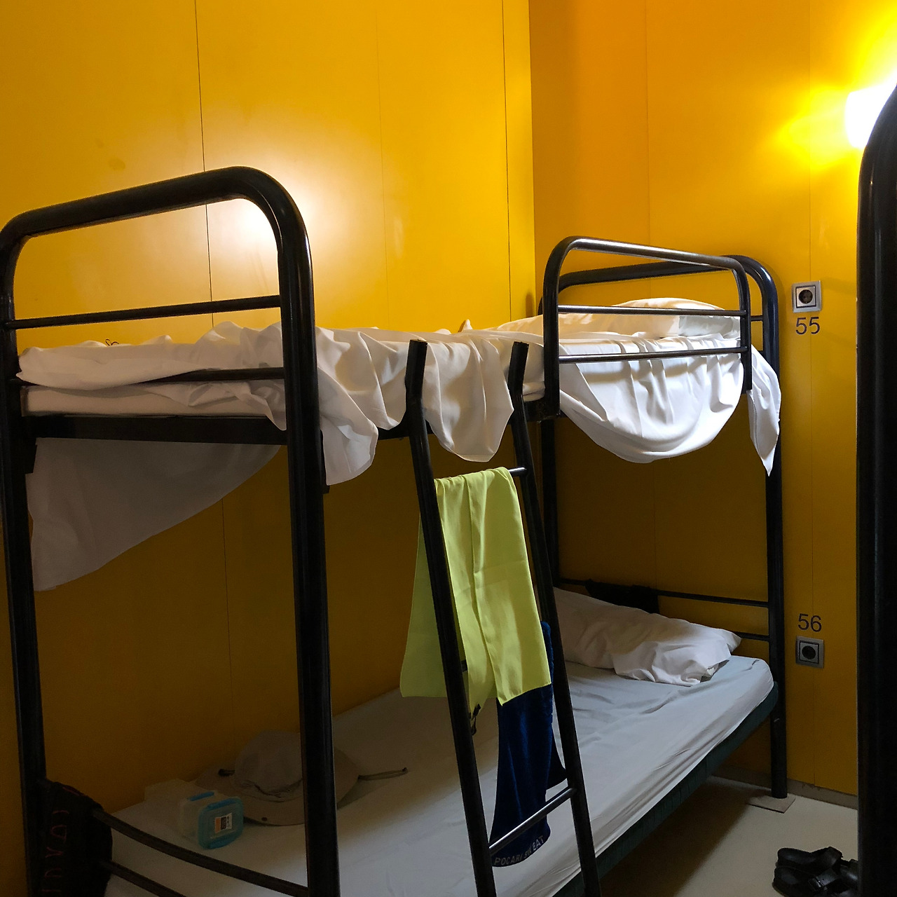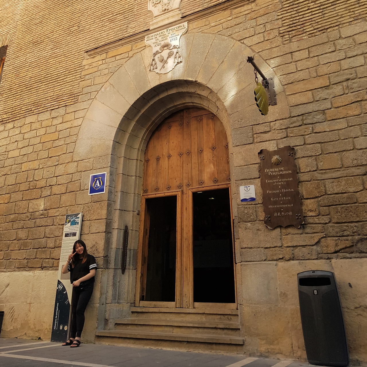 둘째 날 알베르게는 팜플로나 성당 바로 앞에 위치한 곳이었다. 파란색으로 꾸며진 숙소는 깔끔했다. 우리는 반지하 같은 공간을 배정받았는데, 와이파이가 잘 터지지 않았던 것 빼고는 침대, 화장실 모두 괜찮았다.