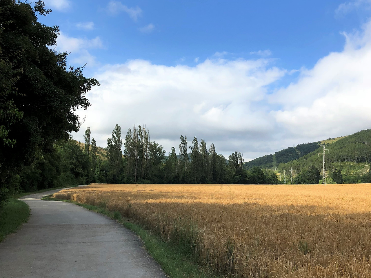 갈림길이 나왔다. 어디로 가든 팜플로나로 갈 수 있을 것 같은데, 우리는 왼편에 보이는 산책로로 가기로 했다. 강을 따라 산책을 나온 마을 주민들이 무척이나 여유로워 보였다.