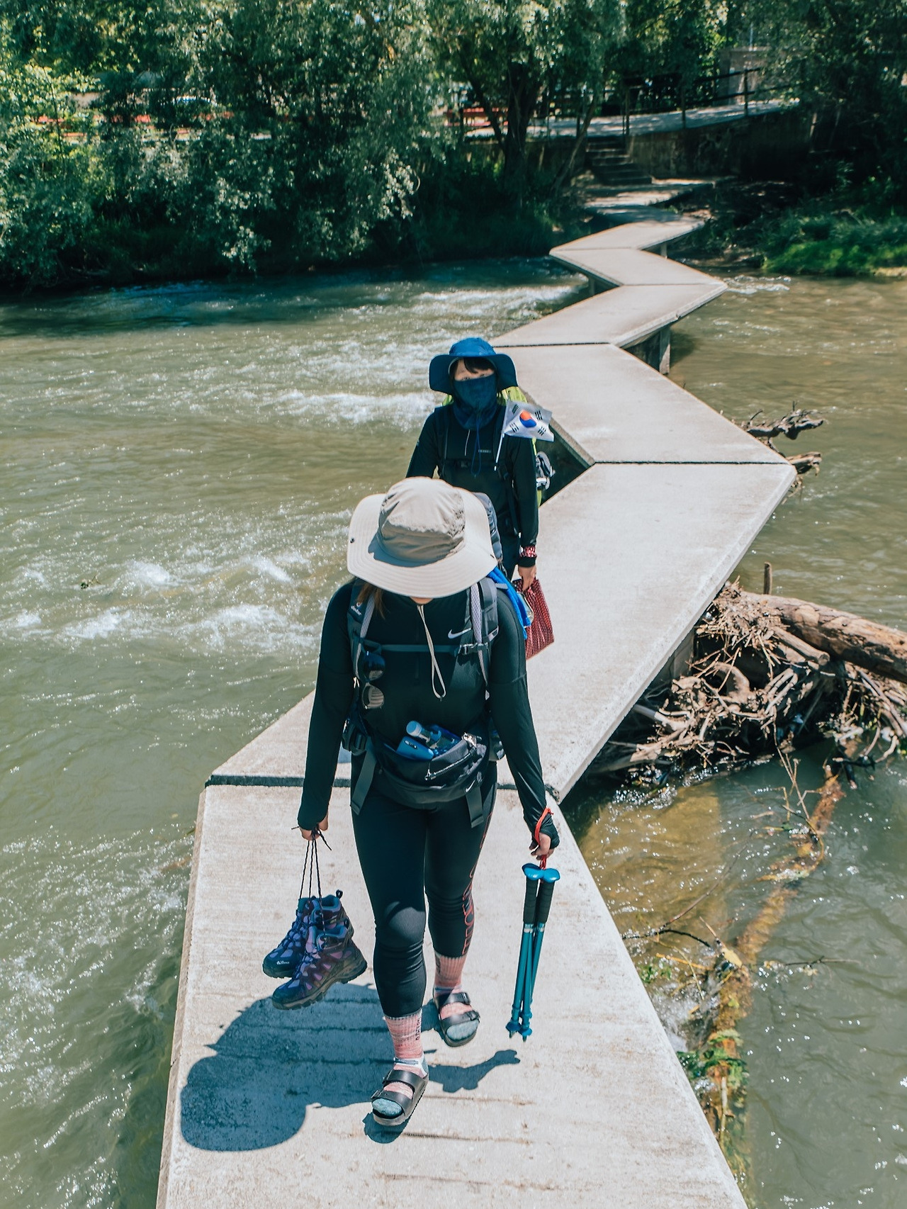 좁은 산길을 지나 숲으로 들어왔다. 저 앞에 곱슬머리의 서양 남자가 멀뚱히 서있는 게 보였다. 흐르는 냇물의 시원함에 잠시 이성을 잃은 걸까. 시원하게 노상방뇨를 하고 있었다. 숨어서 할 법도 한데 저렇게 내놓고 하기 있는지? 쯧. 한참 잘 걷다가 기분이 팍 상해버렸다.