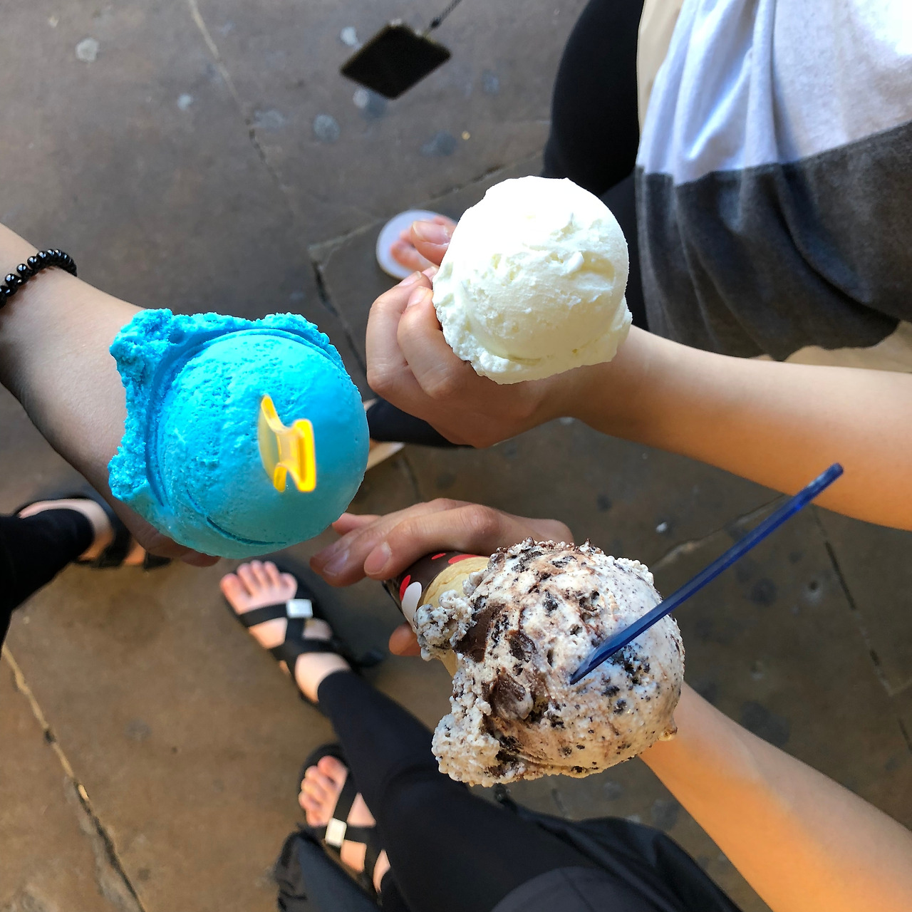 젤라또도 사 먹고 스탠딩 바에서 맥주도 한잔씩 했다. 더운 날씨 탓에 술기운이 금방금방 올랐다. 이때 사진을 보면 주접이 따로 없다.