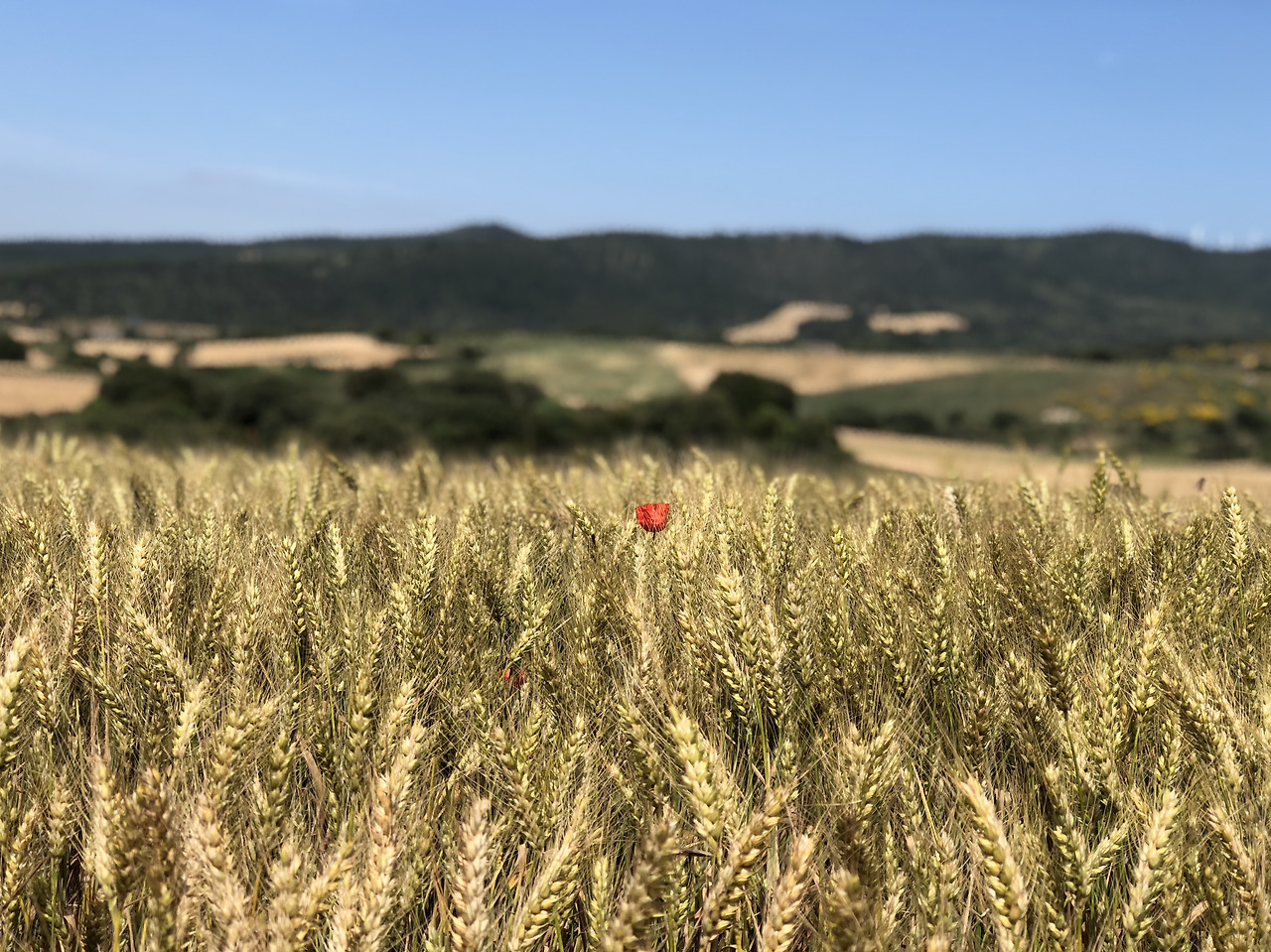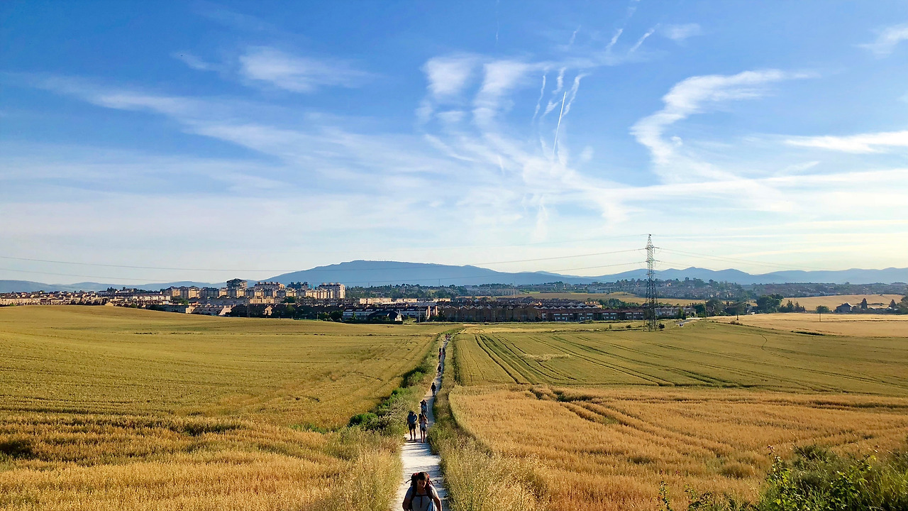작은 언덕을 순식간에 올랐다. 청명한 하늘 아래로 내가 지나온 마을, 드넓게 펼쳐진 밀밭, 각자의 속도로 길을 오르고 있는 순례자들을 보고 있으니 꿈속에 있는 것 마냥 시야가 아득해졌다. 배가 고파서 잠시 어지러웠던 건가?