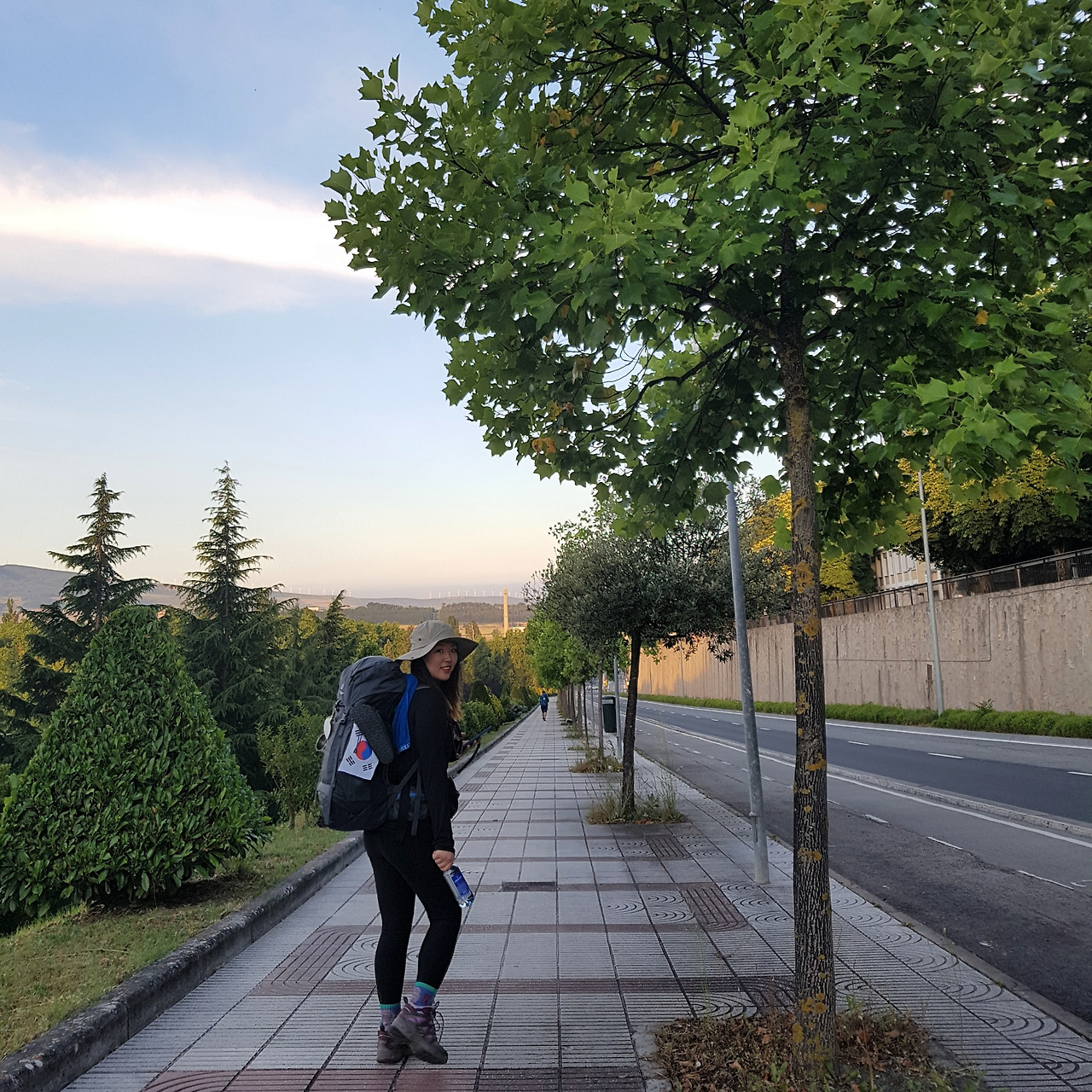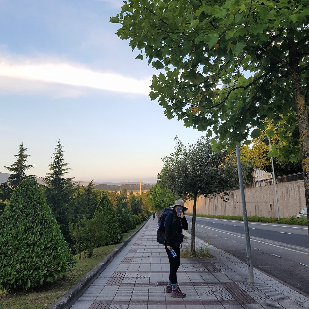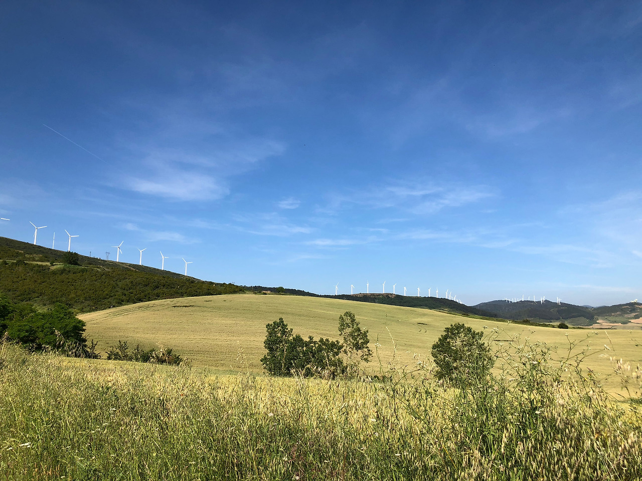 사진을 보면 저 멀리 산등성이를 따라 흰색의 기둥들이 세워져 있는 걸 볼 수 있다. 팜플로나를 벗어날 때부터 보였던 이것은 풍차다. 요한 오빠 말로는 오늘 보게 될 용서의 언덕이 저 풍차가 있는 산을 올라야 나온다고 했다. 아깐 정말 까마득했는데 40분 정도 걸었다고 꽤 가까워진 것 같다.