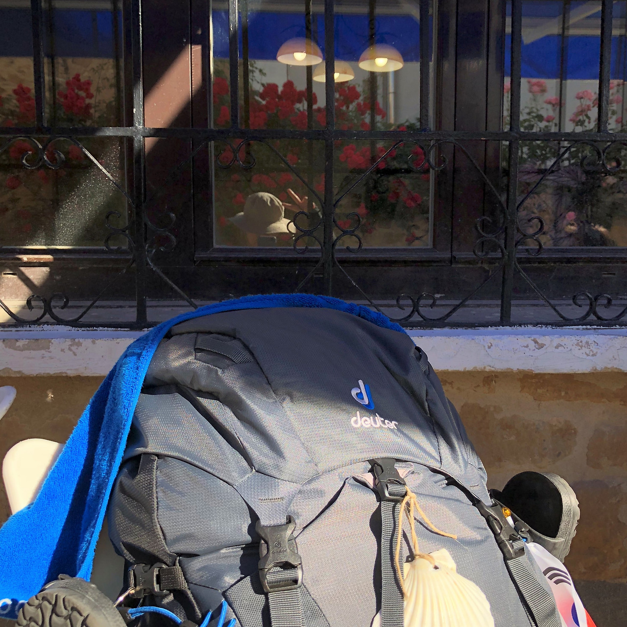 아홉 시 십분. 마을로 들어온 우리는 장미가 예쁘게 피어있는 가게에서 쉬어 가기로 했다.