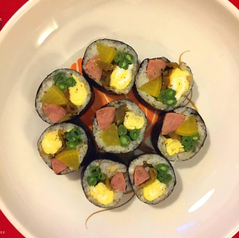 그러다 우리 가족이 외국에서 지내게 되었을 때, 여행을 가거나 집에 손님이 올 때면 엄마는 억척스럽게 김밥을 쌌는데, 나는 그 김밥이 매번 좋았다. 엄마가 직장에 다니는 동안에 엄마 김밥은 소풍날에만 먹을 수 있는 특식이었는데, 그 때는 자주 먹을 수가 있었으니까. 빨간 무말랭이만 넣고 싼 김밥부터, 쉽게 무르는 외국 시금치 대신 깍지콩을 넣고 싼 김밥까지. 어느덧 엄마는 소원대로 김밥말기 선수가 되어 있었다.