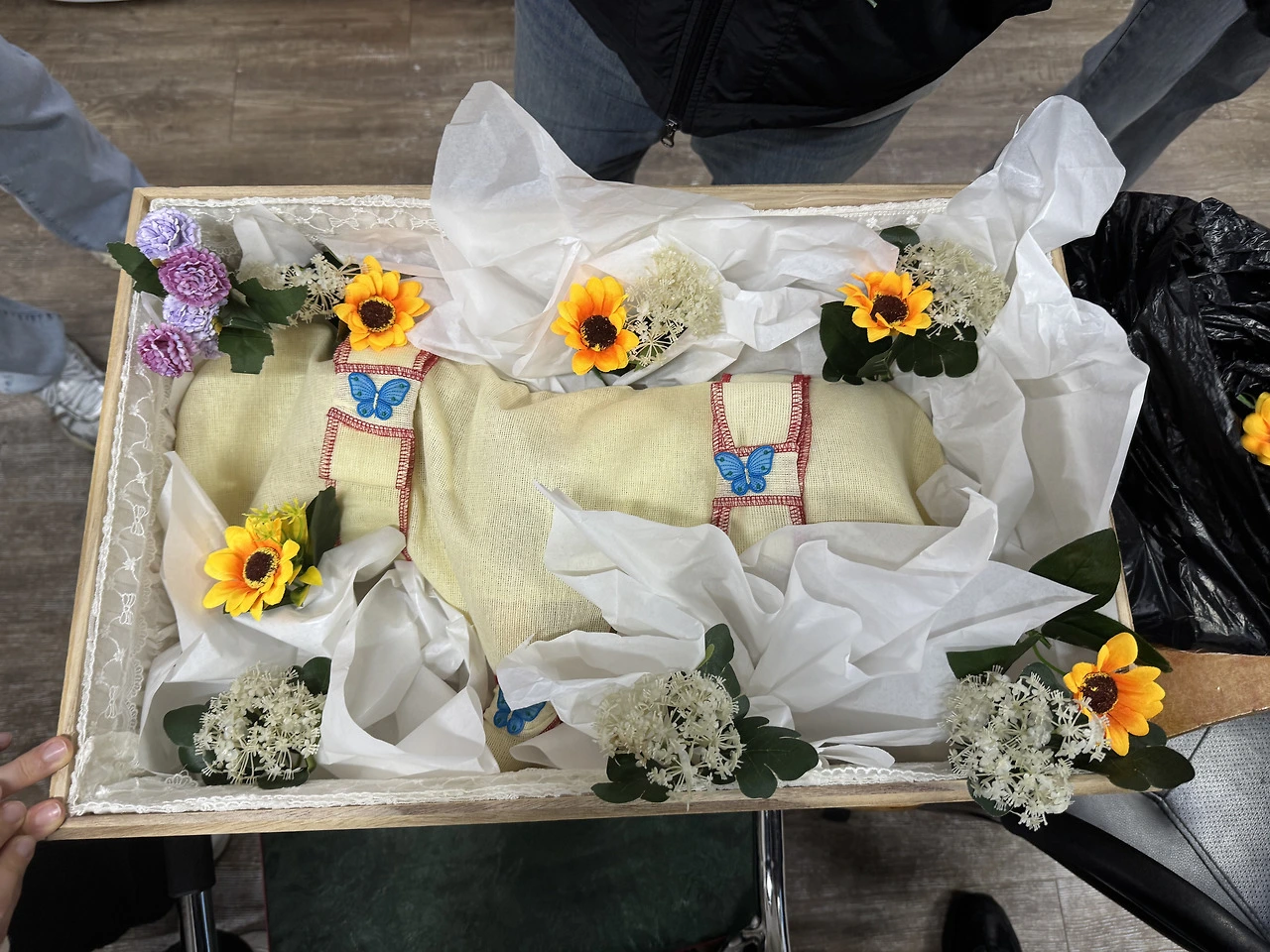 강아지 수시를 하고, 수의를 입히고, 입관까지 하는 연습이었다.
