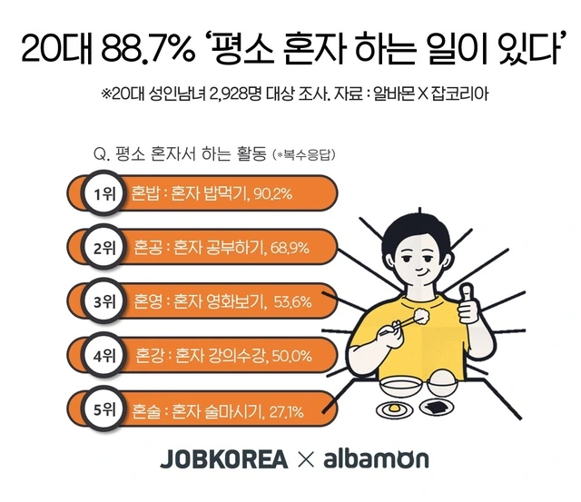 혼밥을 한다는 행위 자체가 나에게는 타인에 눈에 내가 친구도 한 명 없는 초라한 사람처럼 보일 것 같은 두려움이 막연하게 존재하고 있었다.