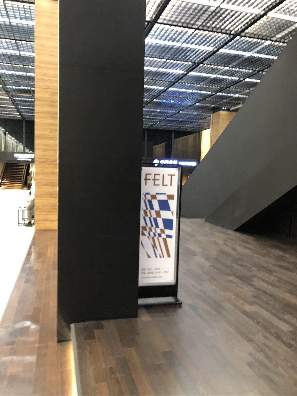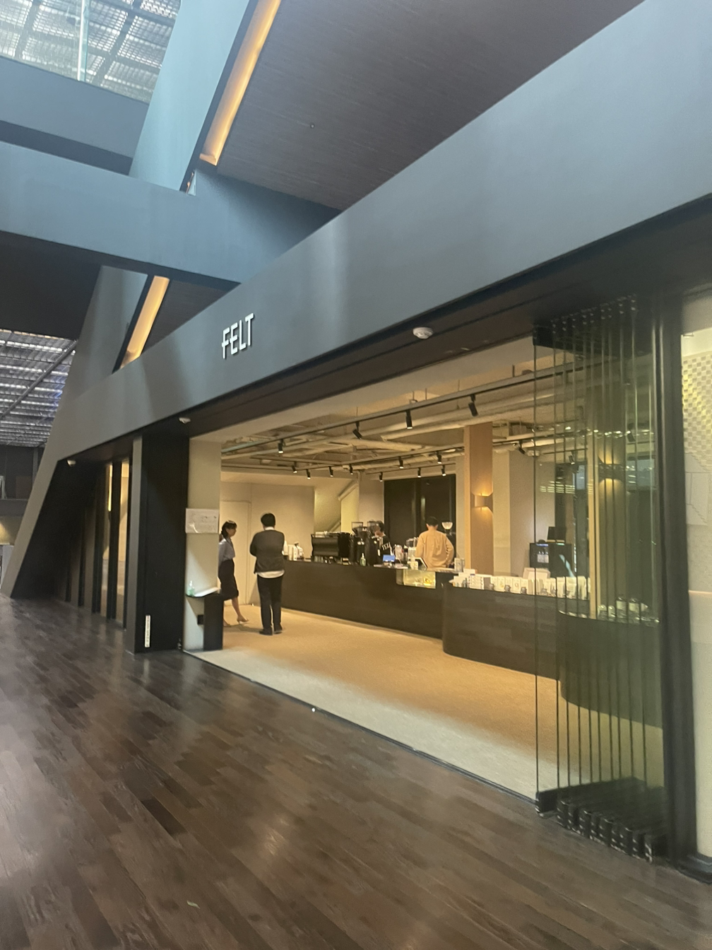 광화문 펠트는 디타워 지하 1층에 위치해 있다. 평일에 종종 찾는 곳이다. 테이블이 없는 대신, 가운데 공간이 넓게 비어있는데 점심시간이면 이 공간이 모두 손님들로 가득 찬다. 주문하는 줄과 커피바 앞에서 커피를 기다리고 픽업하는 사람들로 말이다. 사람이 너무 많아 사진은 안 찍었는데, 사람이 붐빌 때 재미난 광경도 볼 수 있다. 펠트 앞에 있는 커다란 의자 혹은 광장 같은 곳이 마치 펠트의 대청마루 역할을 하는 것이다. 펠트의 공간은 아니라서 테이크아웃한 사람들이 잠깐 앉았다 가는 공간인데, 마치 펠트의 공간 중 한 부분이라고 느껴진다.