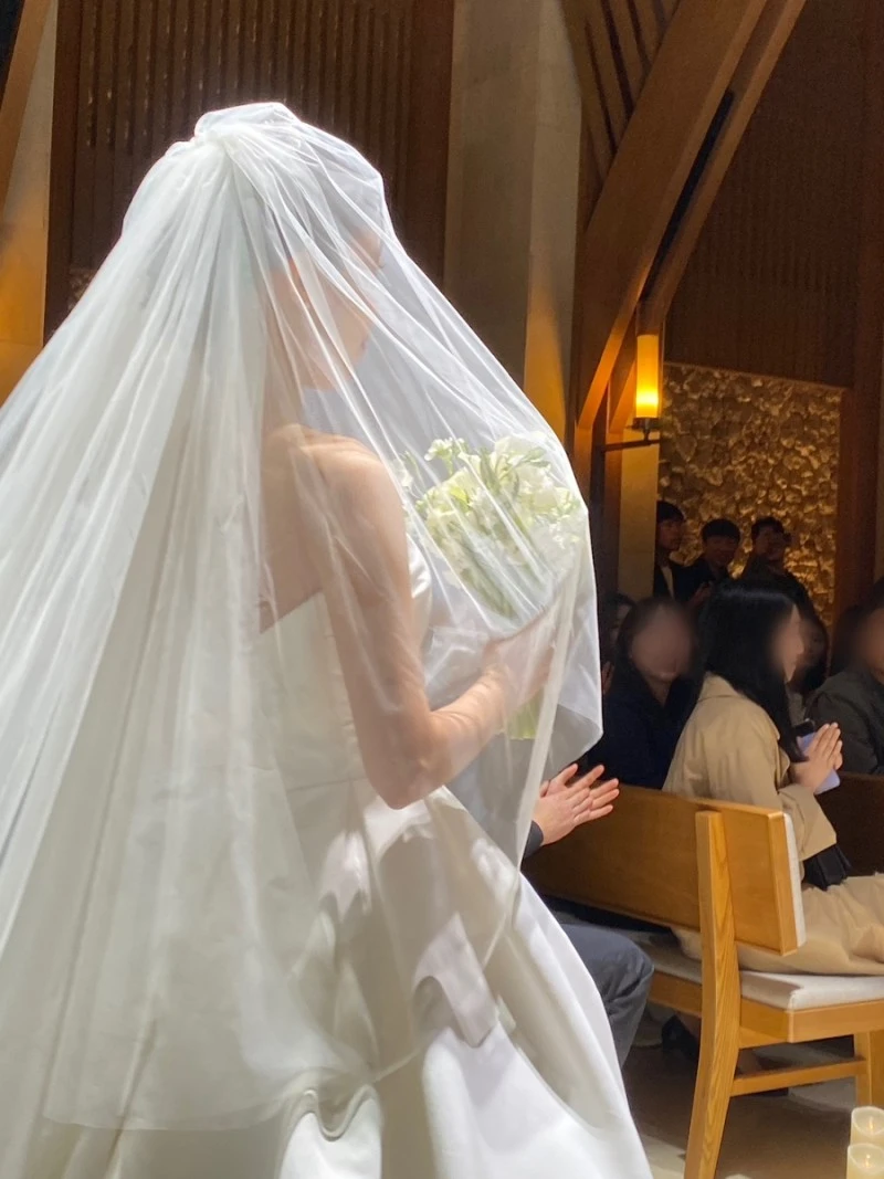 3. 신비로움을 더하기 위해 페이스베일을 쓰고 입장하고 남편이 버진로드 중간까지 나와 페이스베일을 걷어준 후, 같이 걸어갔다. 신부가 바로 나오기보다 신비로움+궁금증을 만들기 위해 페이스베일을 썼다. 정전기나 머리눌림등의 주변 걱정이 있었으나 워낙 내가 확고해서 걱정 없었다. 결과는 대만족