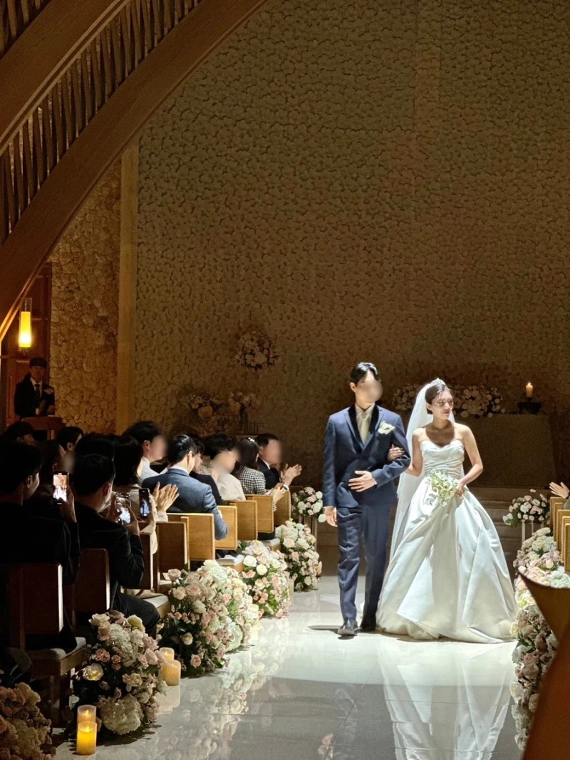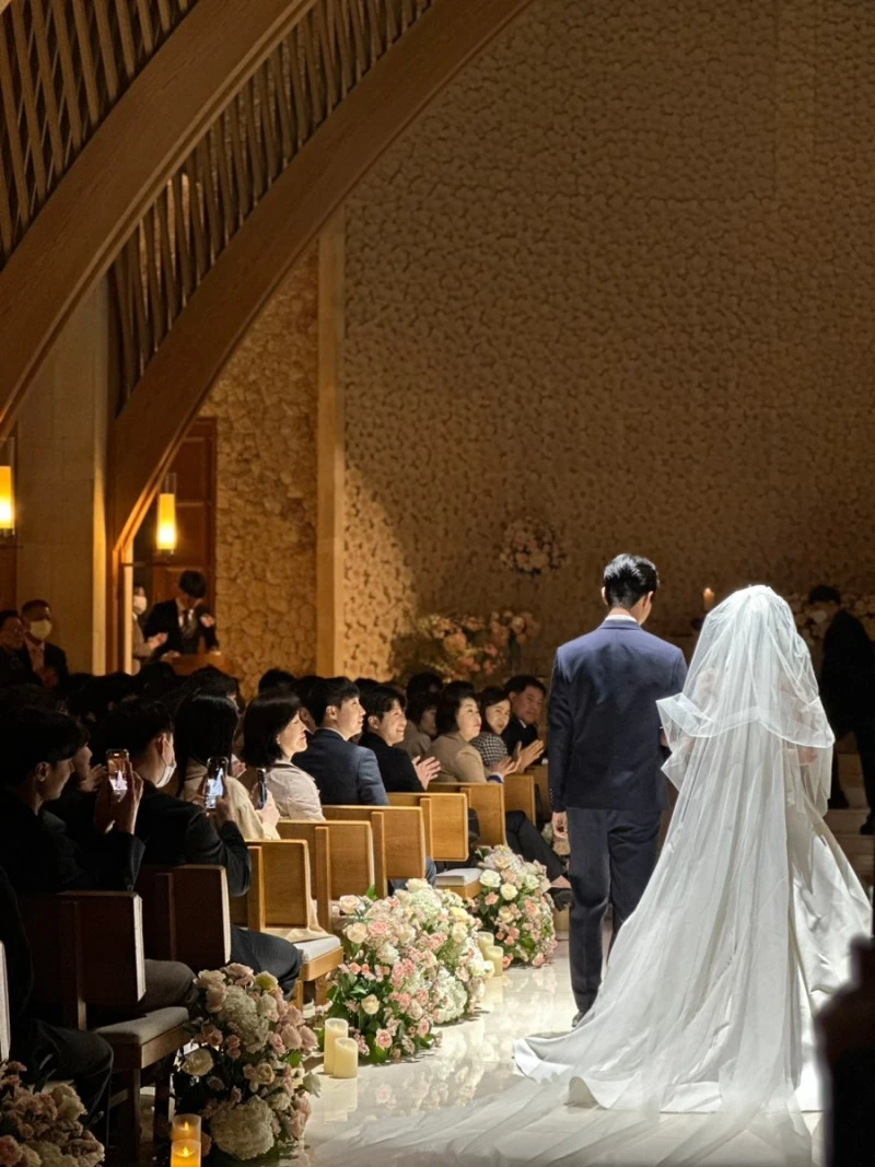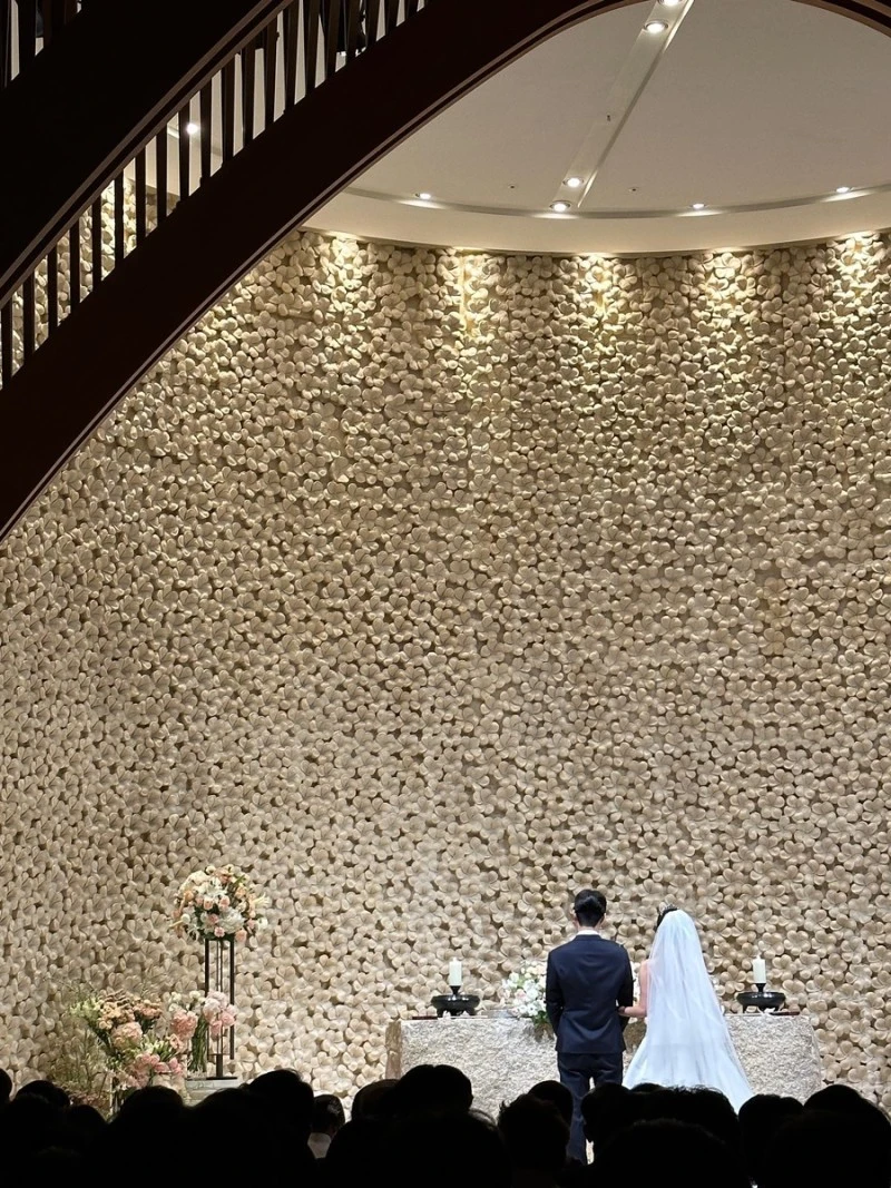 4. 신부 입장곡은 도입부 종소리가 성스러운 포레스텔라의 ‘Angel' 로 선택했다. 페이스베일&미카도실크&채플베뉴와 어울리는 종소리로 시작하는데, 마치 내 결혼식을 위해 만들어진 음악 같았다. 혼자 걸어가는 부분은 조용하고 차분하게, 버진로드 중간에서 만나 남편과 같이 걸어가는 부분은 웅장한 느낌이다.
