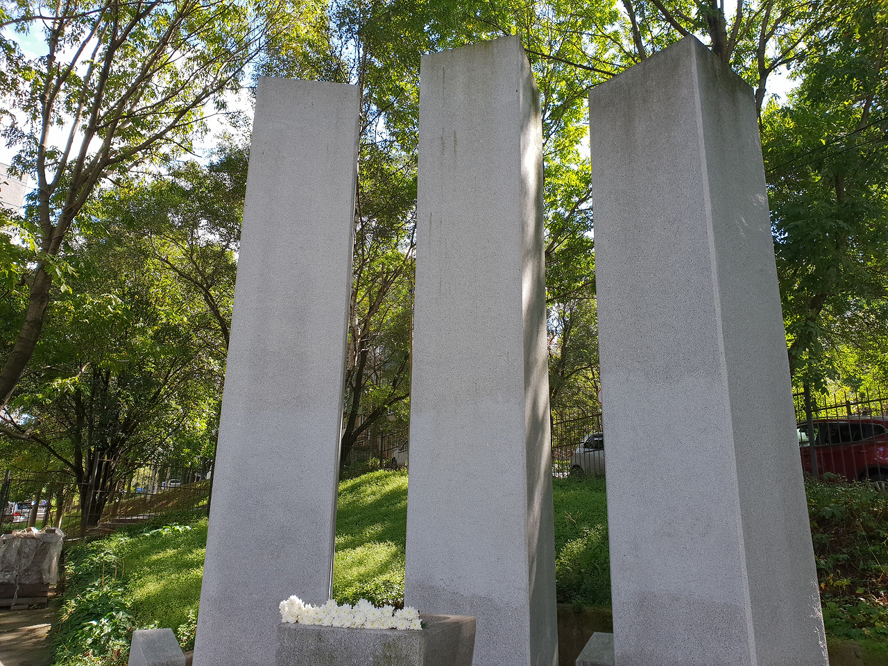 철문을 조심스레 당겨본다. ENTRANCE(입구)라는 표지판에 10:00 - 16:00이라는 시간이 명기되어 있는 걸로 봐서는 입장시간이 정해져 있는 듯 보인다. 다행히 시간을 잘 맞춰왔기에 천천히 문이 열렸다. 내 키의 두배쯤 되어 보이는 세 개의 기념비 앞에 서니 적막한 대기의 무게가 느껴지는 듯하다. 빈손으로 찾아온 것이 이내 죄송스럽다. 국화 한 송이라도 두어야 하는 것을.
