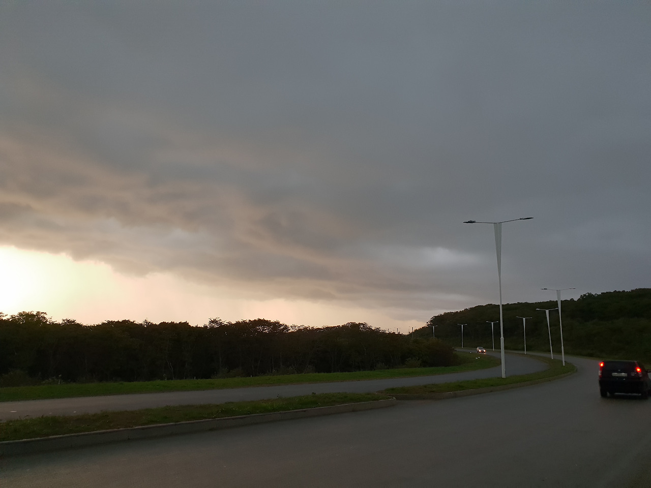 비가 잔잔히 내릴 때까지만 해도 루스키섬의 드넓은 대로변을 따라 걷는 것이 좋았다. 돌아갈 방법이 확실치 않아도 숙소로 가는 길이 멀게 느껴지지 않았다. 자유로운 여행자라는 감상에 도취해서 늦은 시간도, 먹구름도 전혀 개의치 않고 걸었다. 그러나 상황은 순식간에 변했다. 뒤에는 러시아인 커플이 뒤따라 걷고 있었는데, 그들에게 도움을 받은 것은 없지만 그 상황에 혼자가 아니라는 것은 엄청나게 큰 위안이었다.