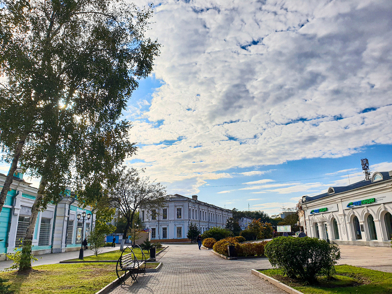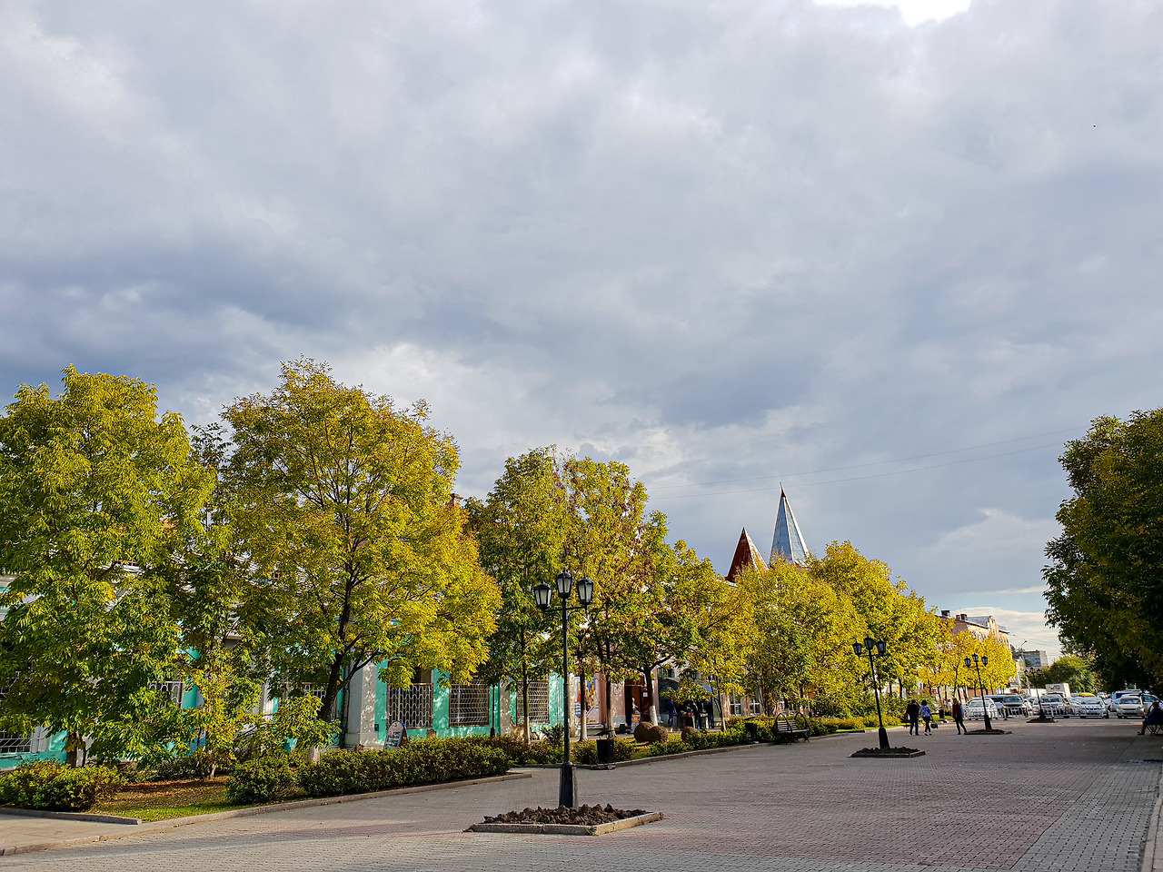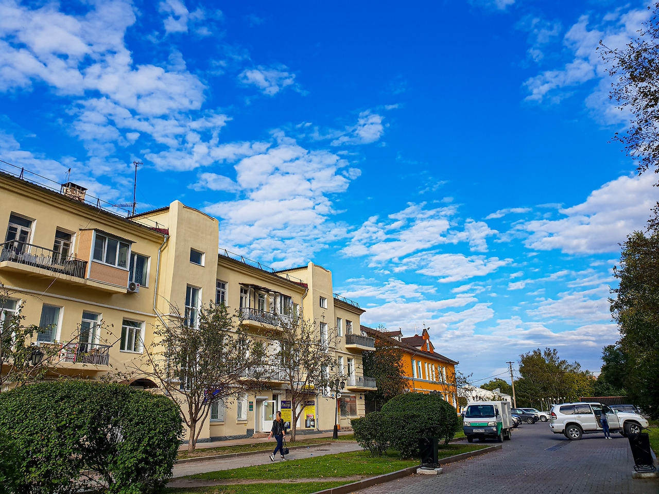여우비가 몇 번을 적시고 간 하루, 다시 따듯한 태양이 거리에 내리기 시작할 땐 고려사범전문학교까지 다녀와 우수리스크 기차역으로 걷는 길에 있었다. ‘SAMSUNG’라는 간판이 반가웠던 이름 모를 거리에 또다시 멈춰 서야 했다. 아기자기한 파스텔톤의 건물들과 차량이 통제된 널따란 거리, 싱그러운 나무와 풀잎들, 이토록 평화로운 분위기라니! 여유가 된다면 며칠이라도 머물고 싶은 우수리스크다.