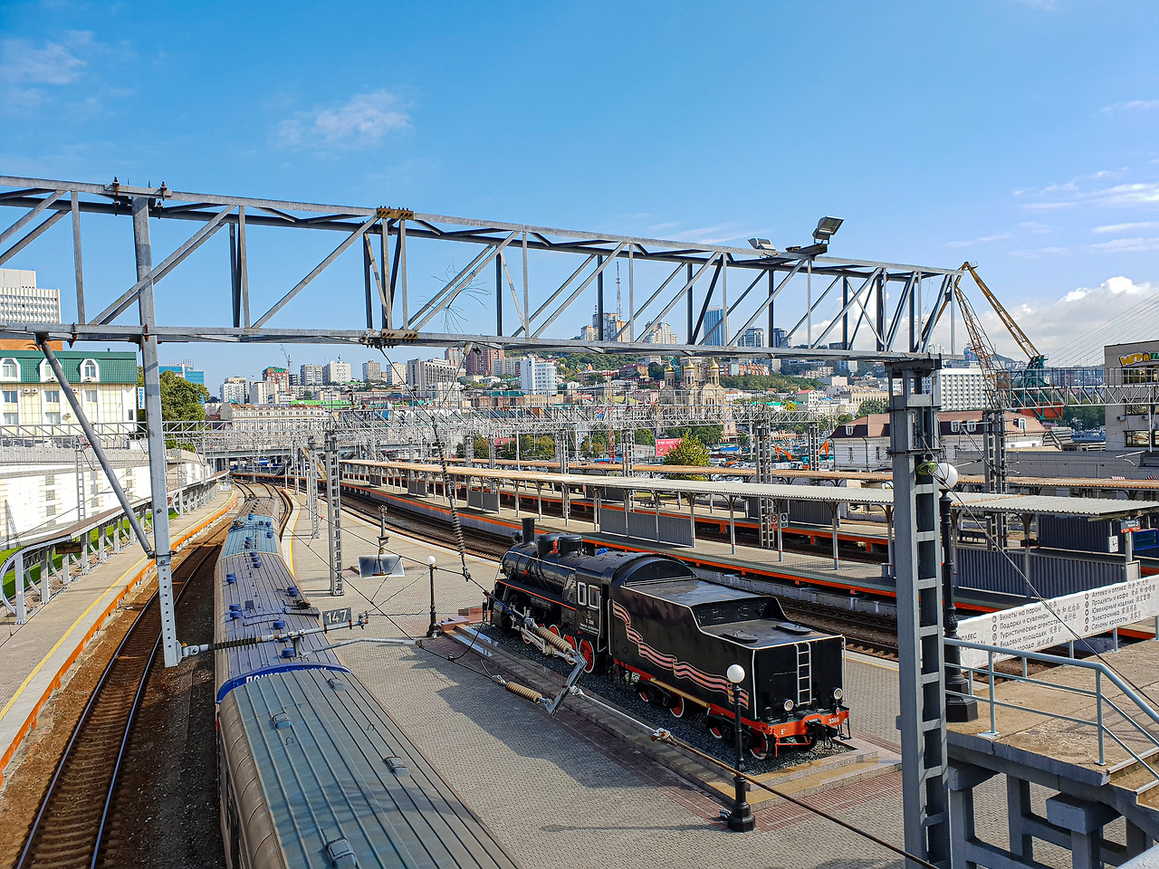 연해주에서 가장 큰 도시이자 시베리아 횡단 열차의 한 종착역인 만큼 블라디보스토크 기차역은 꽤 규모가 크다. 또한 역사 건물은 근세 러시아 건축양식으로 지어져서 그 고풍 있는 외관이 하나의 관람 거리가 된다. 승강장 사이에는 초기에 철도를 달렸던 새까만 증기 기관차가 시베리아 횡단 철도의 종점을 기념하기 위해 전시되어 있는데 이 또한 블라디보스토크의 한 명물이다.