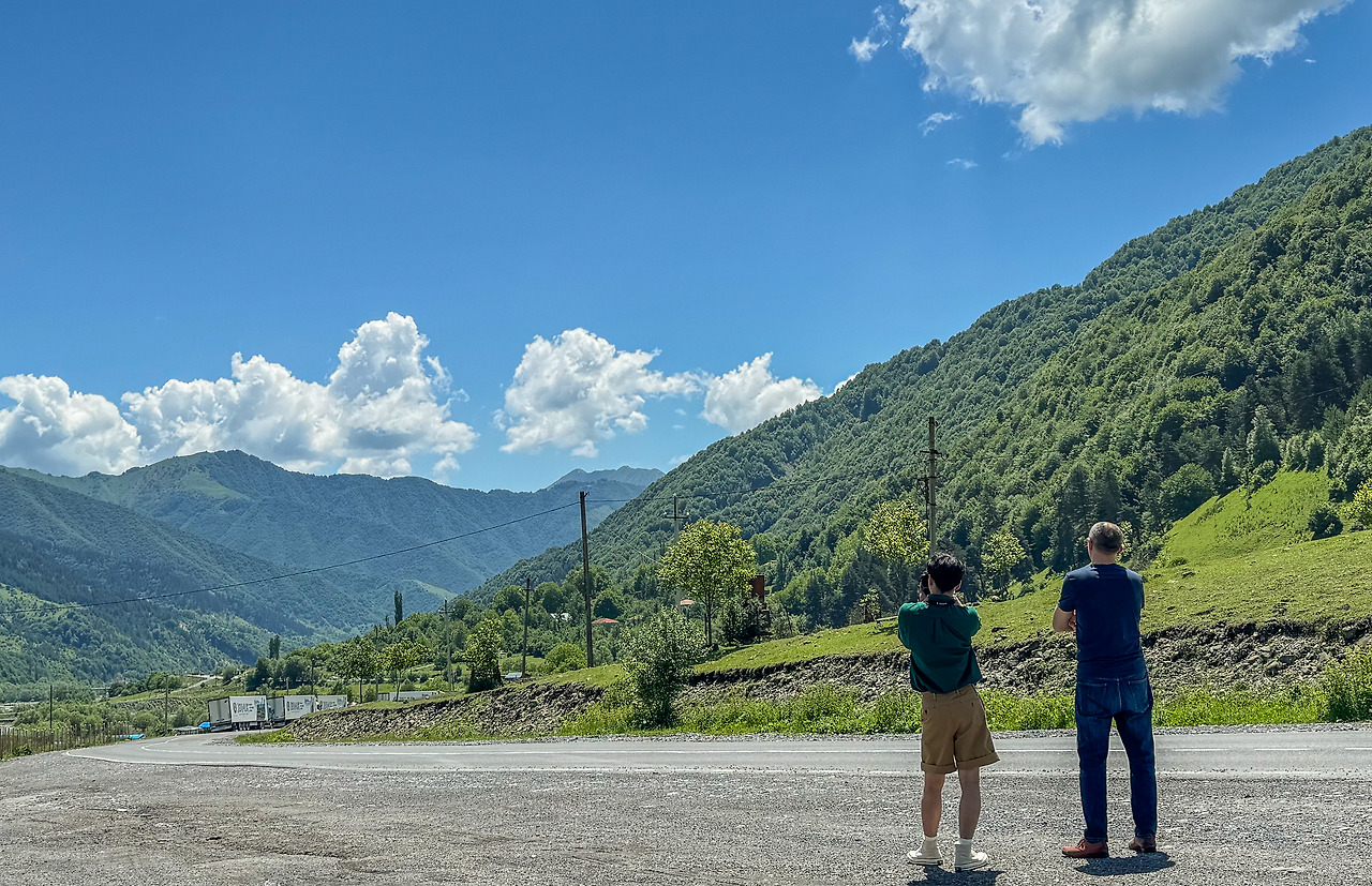 기사는 예약된 일정을 확인하고 승객 세 사람이 모두 당일에 트빌리시로 돌아올 것으로 착각한 모양이었다. 당황한 동행이 손짓으로 조수석을 가리키며 카즈베기까지는 가야 한다고, '마이 프렌드 해브 투 고 카즈베기'라며 기사에게 말했다. 내가 카즈베기에 숙소를 예약했고 며칠은 머무르다 돌아올 것이라고 설명하자 그는 눈에 띄게 다급해졌다. 갓길에 차를 세웠다가 시동을 다시 걸기도 하고, 이곳저곳 전화를 하기도 했다. 하지만 끝내 방법을 찾지 못한 듯했고, 결국에는 구다우리까지도 가지 못할 상황이라고 말하며 어느 곳인지 파악할 수도 없는 위치에 차를 세웠다. “여기서 바로 트빌리시로 돌아가야 할 것 같아요. 더 갈 수가 없습니다.”