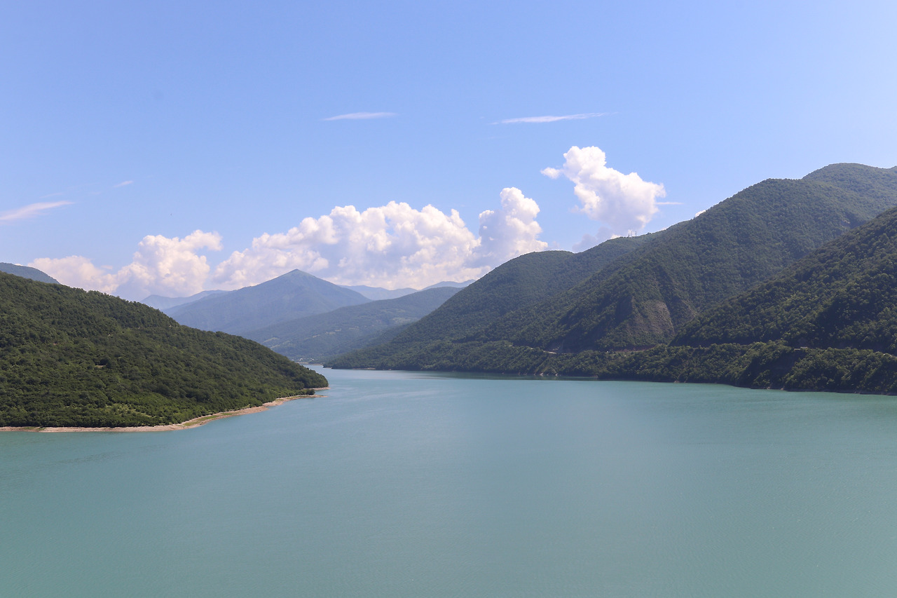 택시를 이용하는 것의 장점은 확실했다. 조지아는 한국과 비슷하게 계절이 지나가는데, 마슈로카는 에어컨을 틀지 않는 경우가 많았다. 그러므로 초여름의 날씨에 세 시간 이상이 걸리는 이동시간을 작은 버스에서 에어컨도 없이 보내는 것은 그다지 즐거운 일이 아니었다. 그리고 보다 중요한 것은, 택시를 이용할 경우 트빌리시에서 카즈베기로 가는 길 곳곳에 위치한 명소에서 잠시 내렸다 갈 수 있다는 것이었다. 가장 유명한 포인트는 진발리 호수, 아나우리 성채, 구다우리 요새 세 곳이었다. 동행을 몇 사람만 구해서 비용을 조금만 나누면 택시를 이용하는 것도 합리적인 선택으로 느껴졌다.