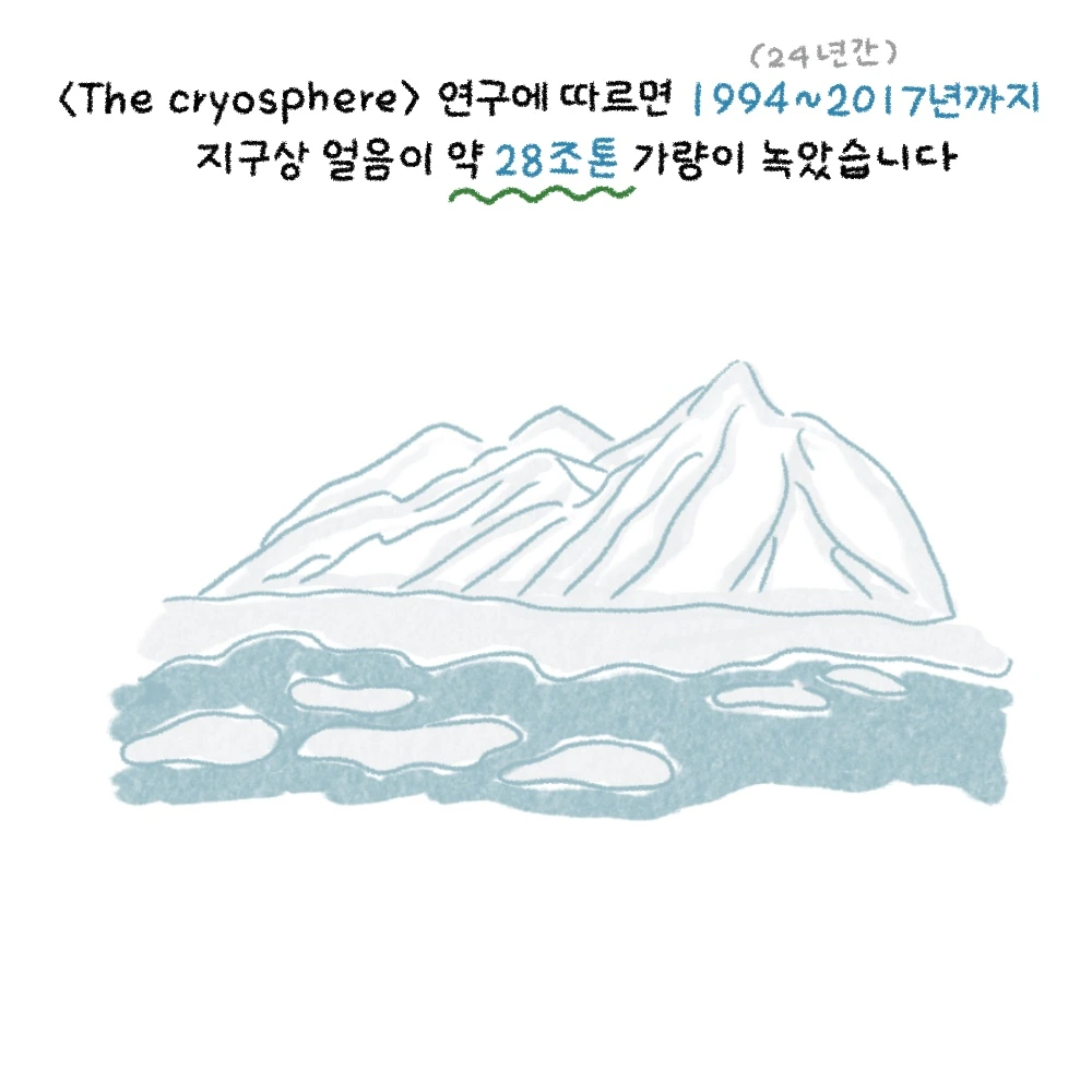 <The cryosphere > 연구에 따르면 1994~2017년까지 지구 상 얼음이 약 28조 톤가량 녹았습니다.