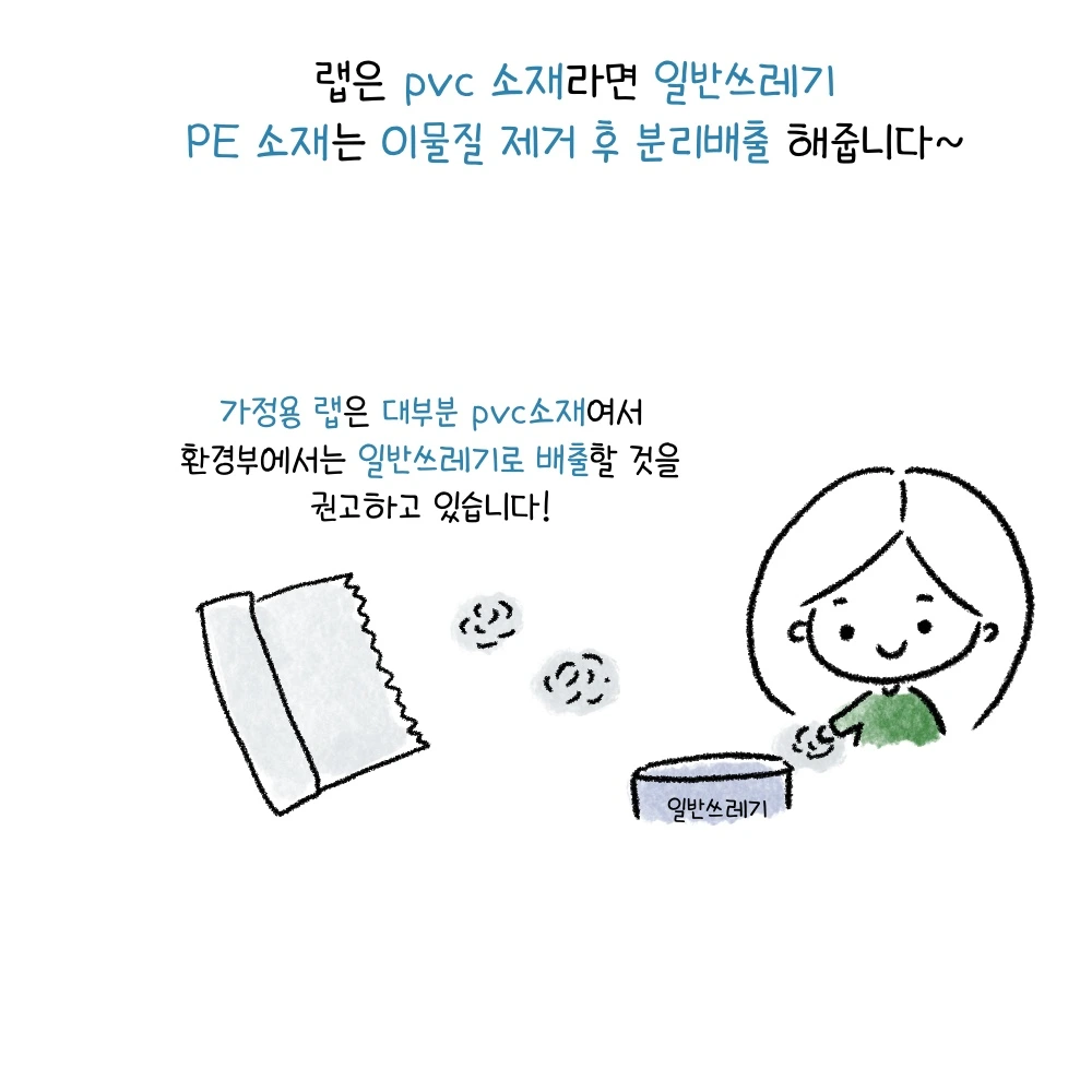 (가정용 랩은 대부분 대부분 pvc 소재로 되어있기 때문에 환경부에서는 일반쓰레기로 배출할 것을 권고하고 있습니다.)