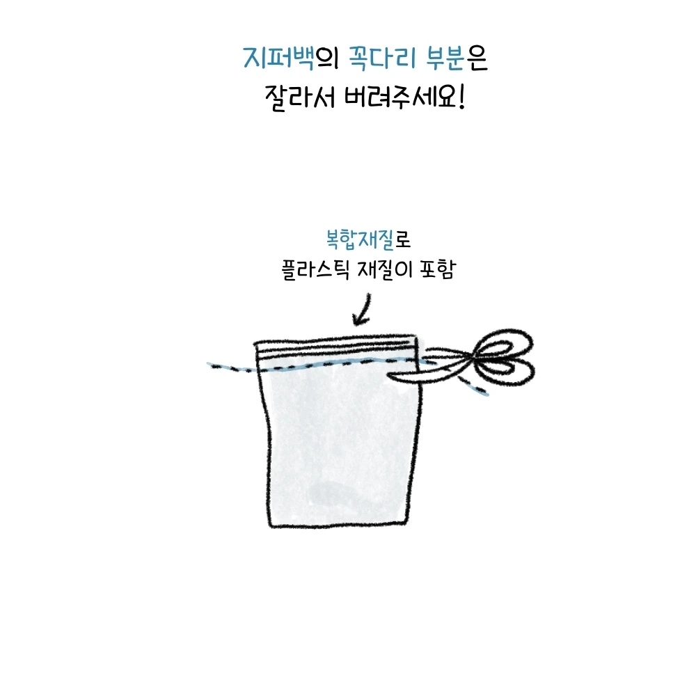 지퍼백의 꼭지 부분은 잘라서 버려주세요!