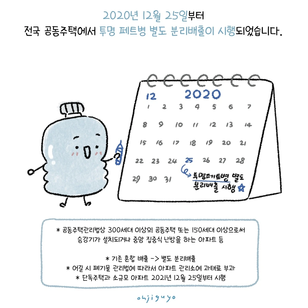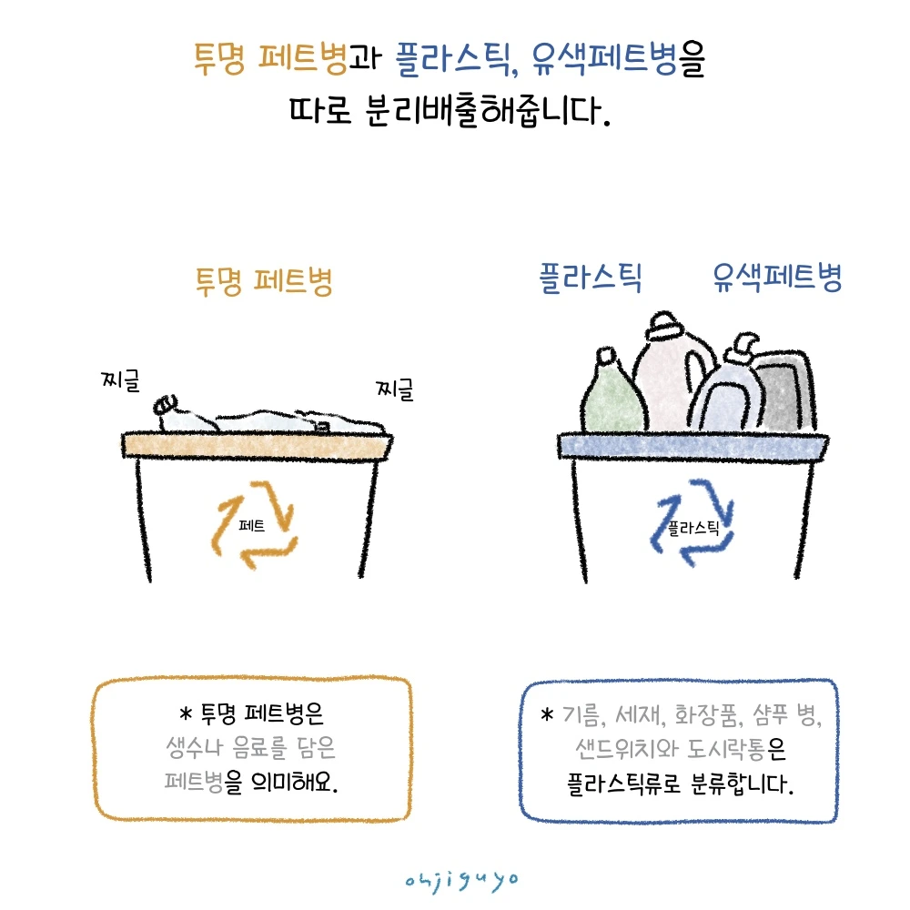 * 투명 페트병은 생수나 음료를 담은 페트병을 의미해요.