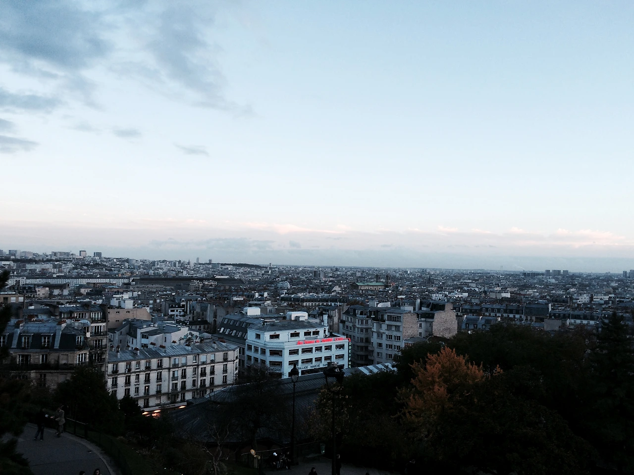 파리의 첫날 비가 내린다.
