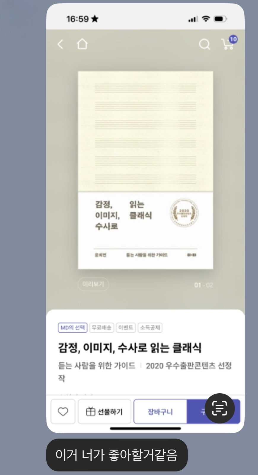 오늘의 공연을 기다리는 와중에 친구가 책 한 권 소개해주었다. 『감정, 이미지, 수사로 읽는 클래식』(!!!!!!!!!!) 제목만 봐도 정말 내 깔 아닌가? 유튜버 하말넘많 영상에서 브런치 작가 서솔씨가 추천해 줬단다. 이북으로 당장 찾았지만 없었다… 종이책으로만 읽어야 한다. 그래서 일단 도서관 희망도서로 넣어두고 기다리는 중이다.