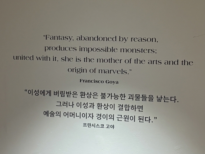 “이성에게 버림받은 환상은 불가능한 괴물들을 낳는다. 그러나 이성과 환상이 결합하면 예술의 어머니이자 경이의 근원이 된다.”