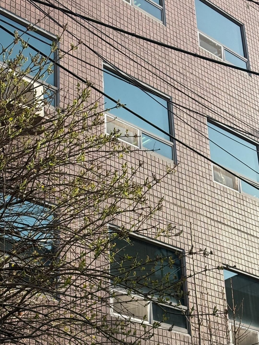 어젯밤에 춥길래 얇은 패딩 입고 나왔는데 세상 더워서 혼났다. (그래도 오늘은 마스크를 챙겼으니 되었다) 암튼 먼지도 햇살도 가득한 날. 언덕을 오르는데 나무가 초록빛을 띠고 있길래 담아보았다. 오늘의 출근송은 레오니드 코간의 차이코프스키 바이올린 협주곡이었는데.. 나 혼자 그 거리에서 제일 격정적이고 당황스러운 출근길이었다. (아침부터 귀로 블록버스터를 듣는다고 생각해 봐라)