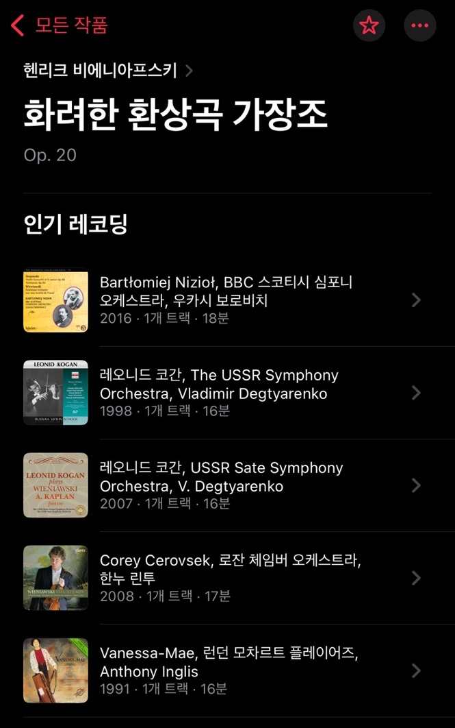 엊그제 애플뮤직도 다시 시작한 김에, 유튜브 말고 클래식 앱에서 환상곡을 들어보고 싶어서 냉큼 검색하러 들어갔다. (애플뮤직은 클래식 앱이 따로 있는 거 아시는가? 한글로 쉽게 검색할 수 있다. 음질도 유달리 좋은 것 같다)