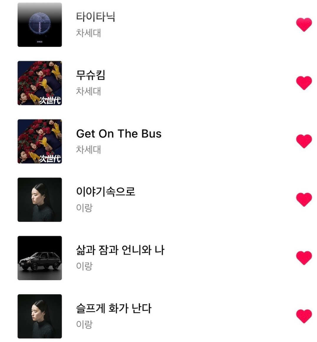 이 사진은 내가 보낸 가장 위의 재생목록. 몽당연필이 되어가고 있는 차세대의 음악과 이랑의 음악이 있다. 이랑 님은 열아홉 살 때 미쓰라의 야간개장이라는 라디오를 듣다가 알게 된 가수다. 지난 글모 주제인 '나를 슬프게 하는 것들'을 쓰다가 '슬프게 화가 난다'라는 워딩이 떠올라서 다시 듣다가 추가했다. '삶과 잠과 언니와 나'는 먼저 세상을 떠난 언니에게 보내는 곡이다. 슬프고 아름답다.