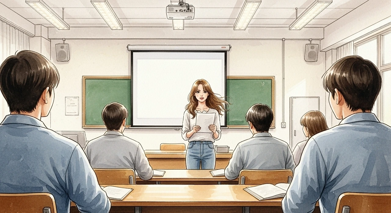 넓은 모래사장 속에 있는 하얀 조개 사진이 모니터에 띄어져 있었다. 그녀는 목을 한 번 가다듬고는 짧은 시를 읽어나갔다.