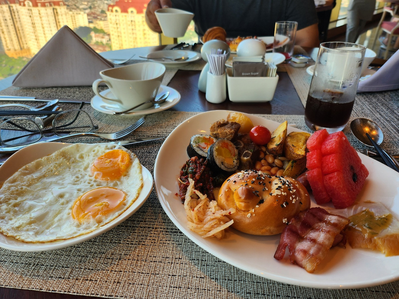 초이와 함께 해장을 하러 23층 레스토랑으로 올라갔다.