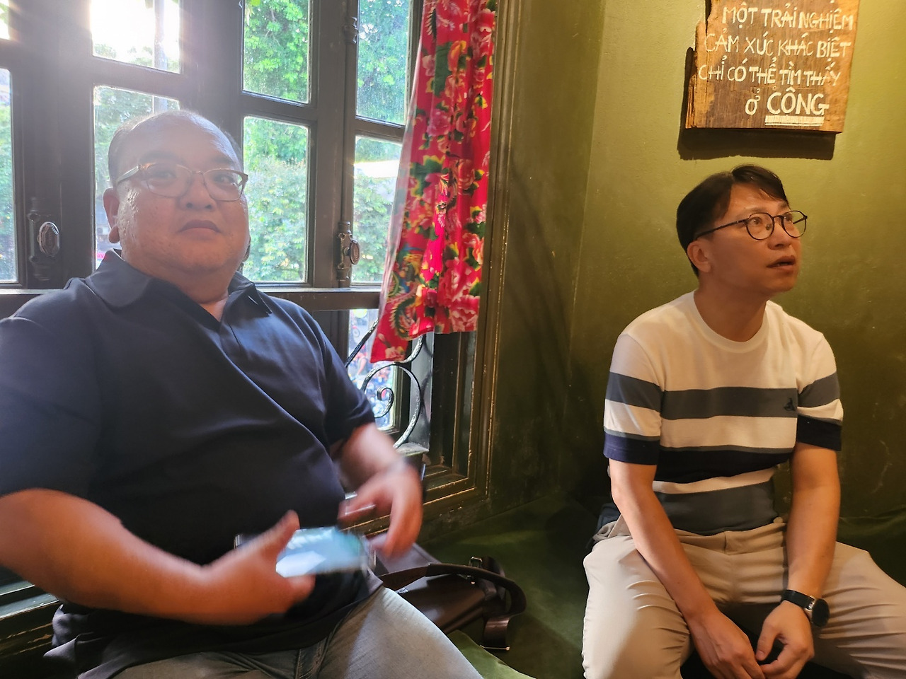 규성이의 차를 타고 하노이에서 가장 유명한 커피숍 '콩 카페'로 향했다.