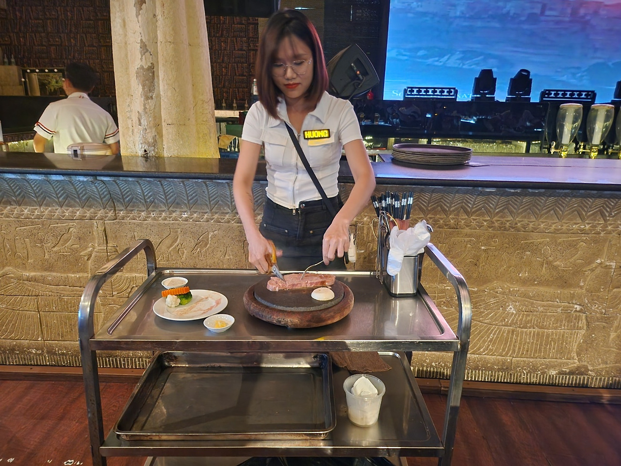 스테이크 안주를 시키자 우리가 보는 앞에서 고기를 손질해 줬다.