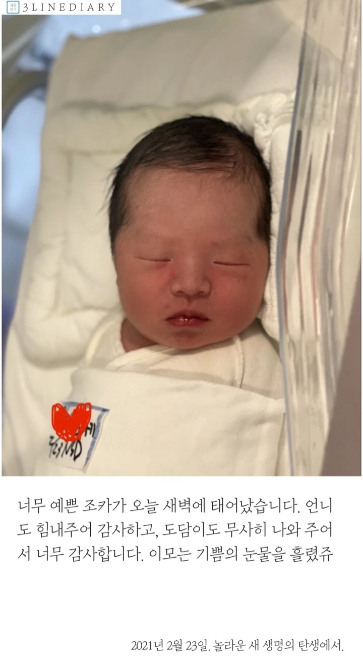 3월 1일 세상에 나오기로 했던 도담이는 지난 새벽 3시경 나 지금 나가고 싶다는 의사 표현을 하며 노크를 심하게 했고, 진통이 심하게 오기 시작한 언니는 형부와 함께 앰뷸런스를 타고 병원으로 향했다. 그리고 병원에 도착한 지 오래 지나지 않아 사랑스러운 우리 도담이가 태어났다고 했다.