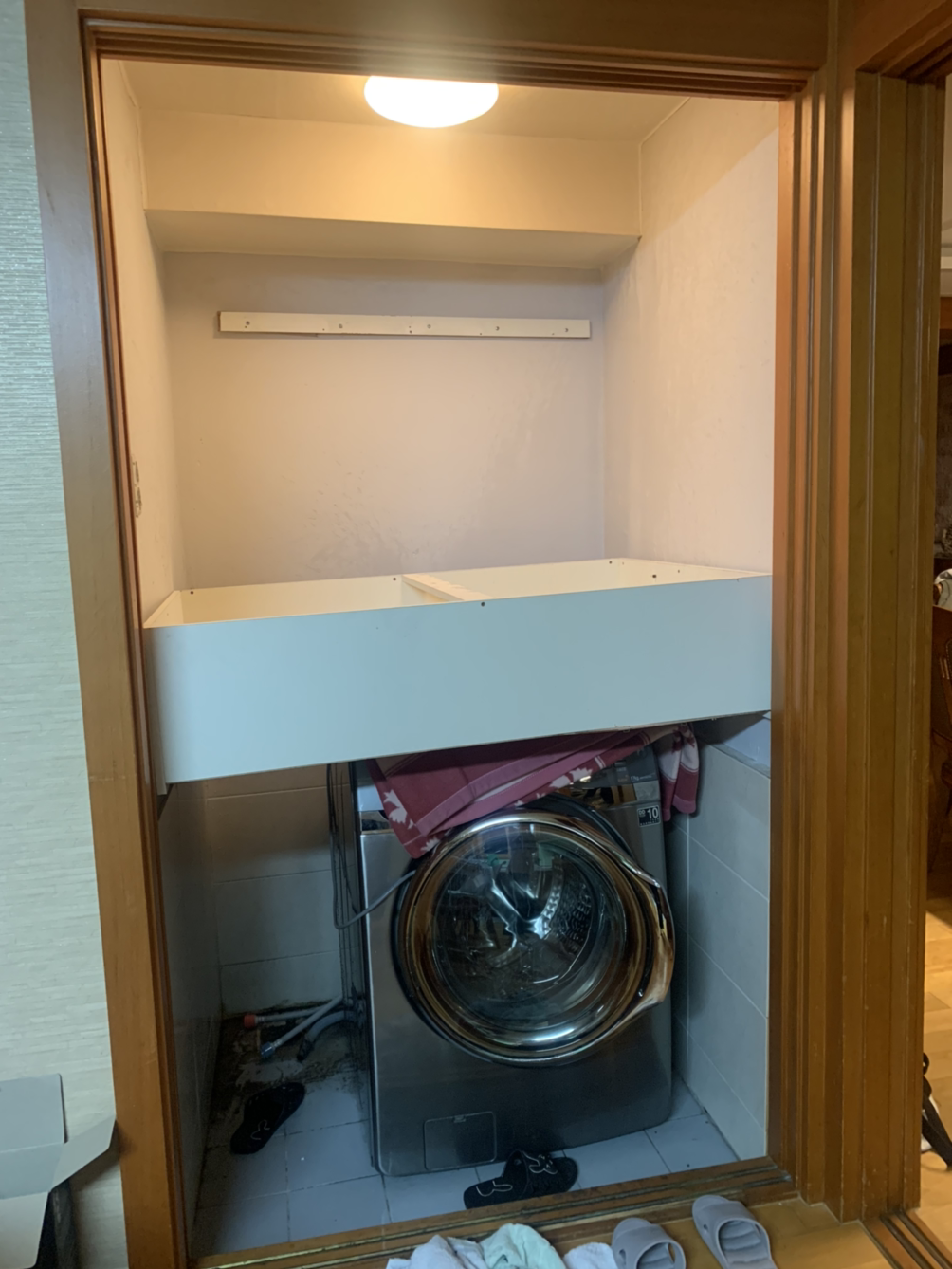 세탁실 수납장을 떼는 데 홍수가 웬 말이냐.