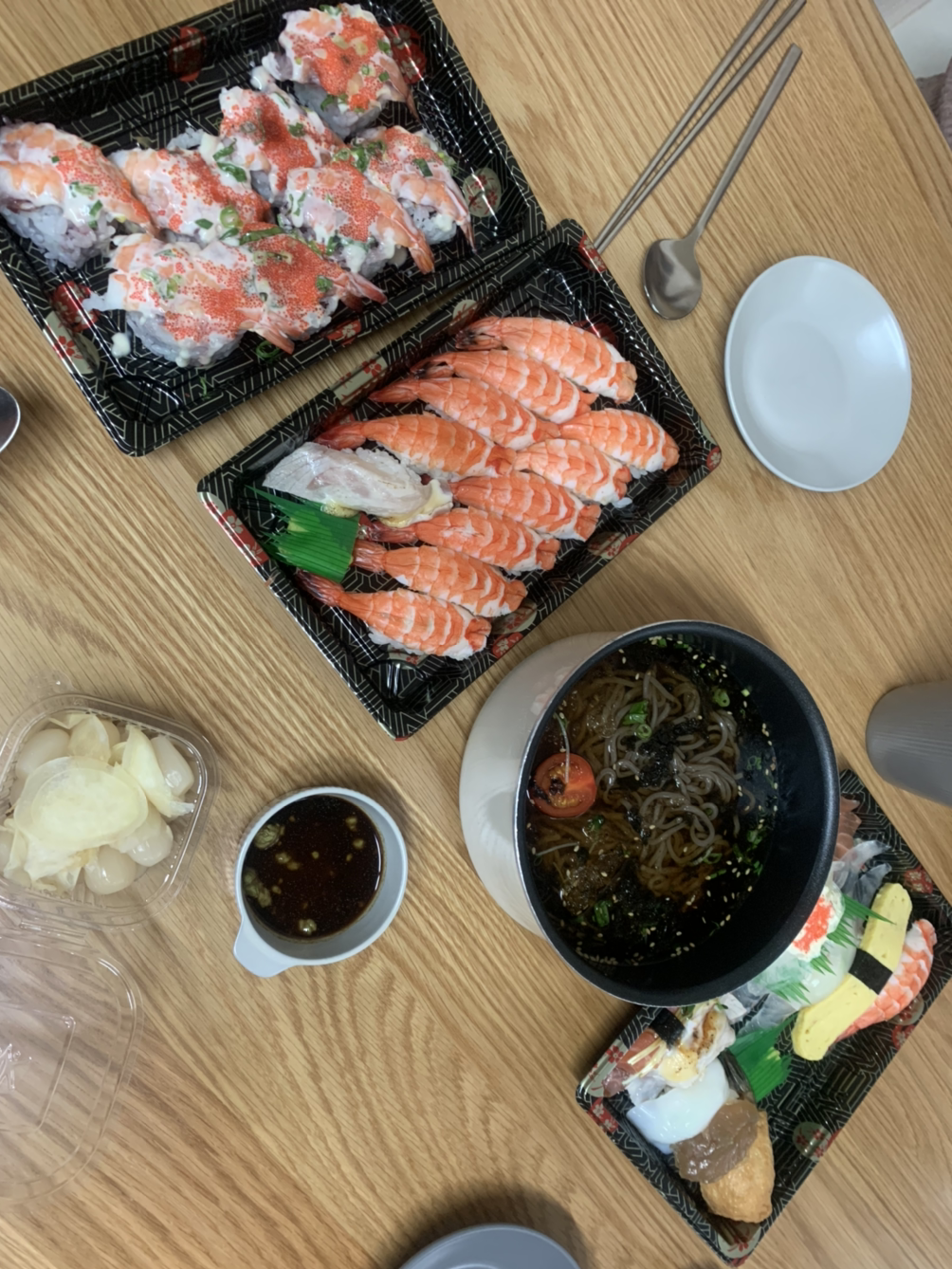 해를 넘겨 이전에 함께 일하던 직장 동료들을 만나기로 한 날이었다. 올해 4월, 출산을 앞두고 있는 동생이 있어 그 집으로 모이기로 했는데 대중교통으로 꼬박 2시간이 걸리는 길이었다. 버스를 타고 지하철을 타고 버스를 타고 무사히 도착했더니 배가 볼록하게 나온 동생과 먼저 도착한 부장님이 반갑게 맞아주었다. 집 구경을 할 새도 없이 나보다 먼저 도착한 초밥과 메밀이 차려진 식탁으로 향했다.