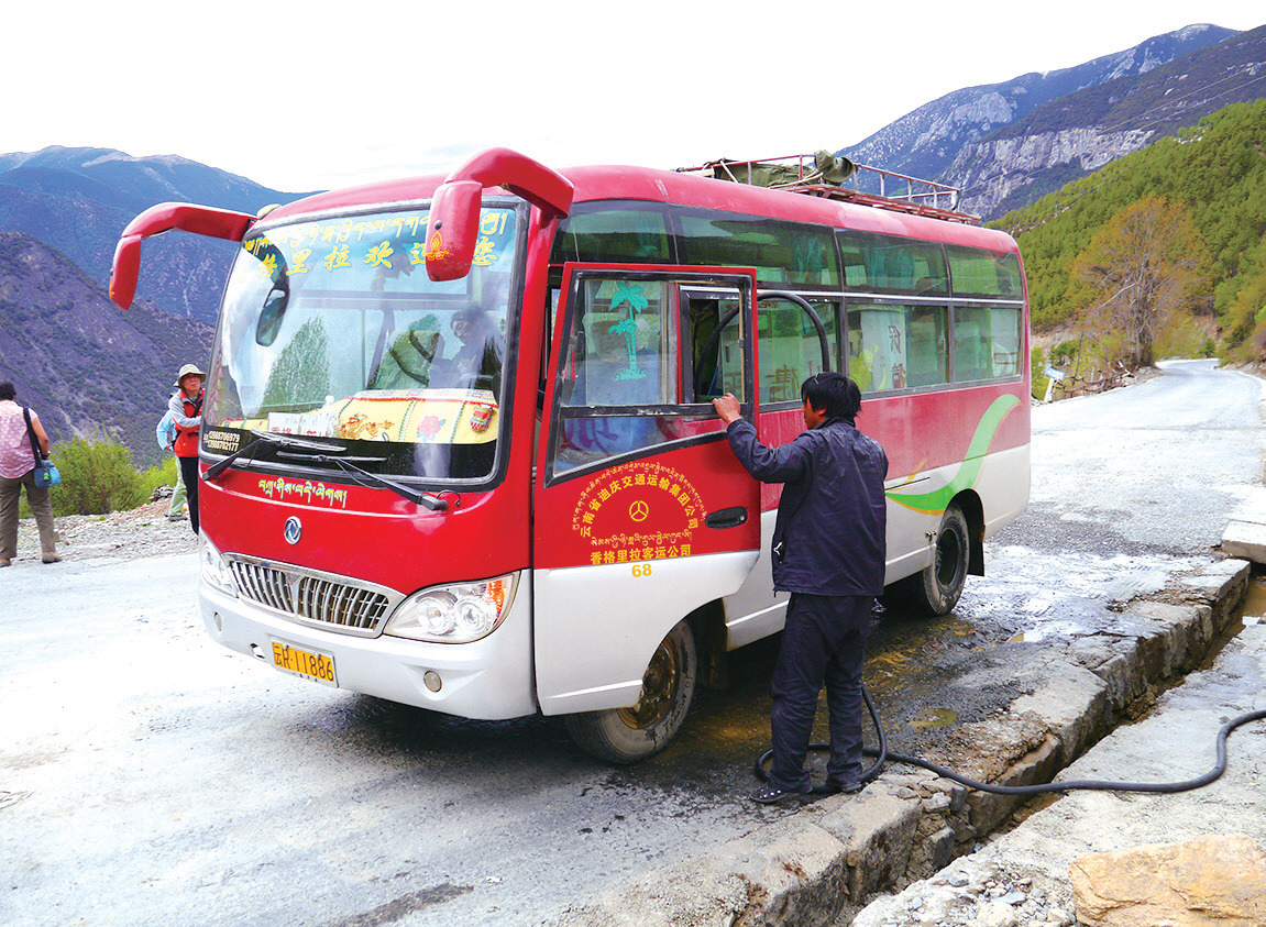 냉각수로 부동액을 쓰는 게 아니었다. 제대로 된 냉각장치도 없는 차가 이 험한 길을 달려오다니. 운전병으로 군생활을 마친 나에게 버스 기사는 존경의 대상이었다. '기사 아저씨 찌아요~' 그렇게 버스는 4000m 이상의 고산을 굽이굽이 돌고 넘어 10시간 30분 만에 따오청에 도착했다.