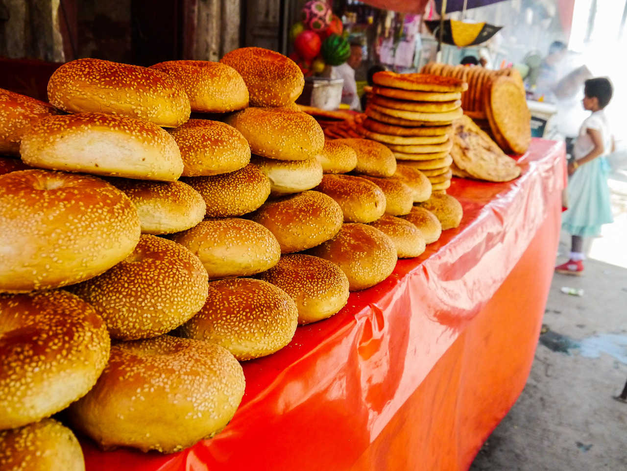카스에 왔다면 양꼬치를 꼭 맛봐야 한다. 숯불에 구운 양꼬치는 세계일주 중 다섯 손가락 안에 드는 맛이었다. 카스에서 맛봐야 할 음식이 또 있다. 중국어로 라멘이라고 발음하는 '라만'과 '낭'이다. 낭은 위구르 사람들이 밥 대신 먹는 빵을 말한다.