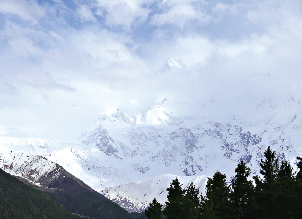 "똑, 똑, 똑." 빗방울 떨어지는 소리에 잠을 깼다. 텐트를 나서니 낭가파르바트가 흰 구름 모자를 쓰고 있었다. 피톤치드를 듬뿍 머금은 상쾌한 공기가 폐 속의 더운 공기를 밀어냈다. 기지개를 켜고 주변을 둘러봤다. 싱그러운 아침이었다.