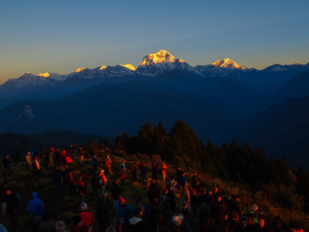 고레파니 '그린뷰 로지(Green View Lodge)'에서 두 번째 밤을 맞았다. 푼힐 트레킹을 위해 이른 저녁을 먹고 서둘러 잠자리에 들었다. 오전 4시. 무거운 몸을 침낭에서 빼냈다. 산속의 새벽은 얼음장처럼 찼다. 추위를 뚫고 40분 정도 숲길을 오르니 푼힐이 눈에 들어왔다. 하나둘 사람들이 늘어갔다. 아직 어둠이 채 가시지 않은 새벽하늘은 티끌하나 없는 회색 빛 도화지 같았다.